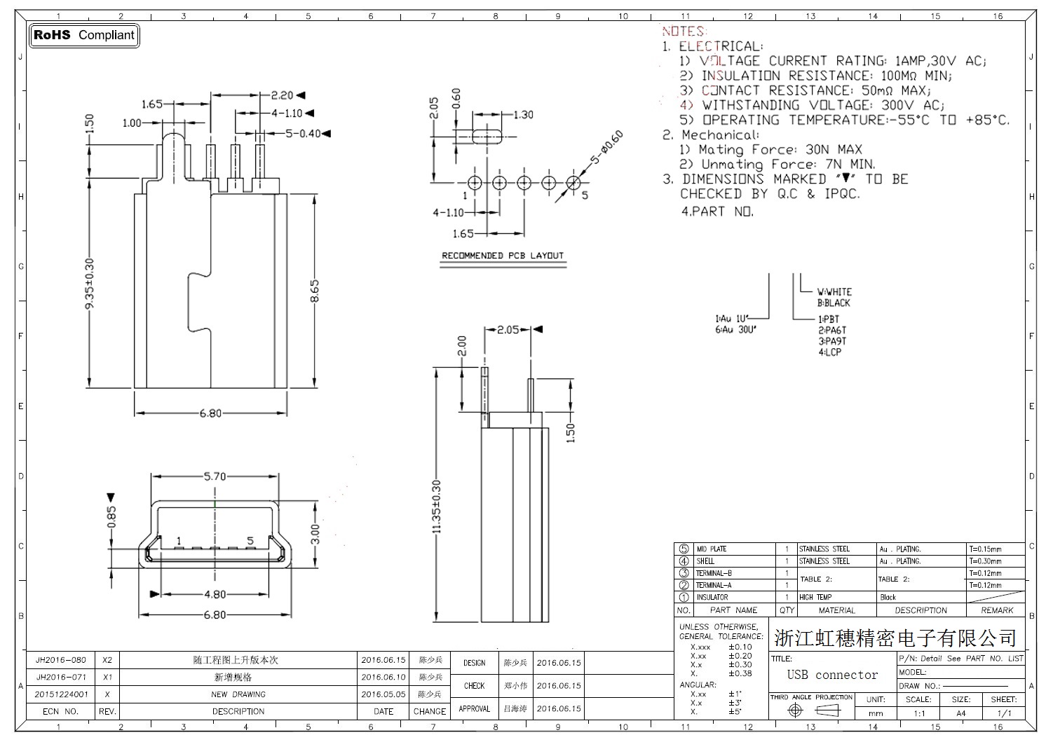 MINI USB插座技術參數: