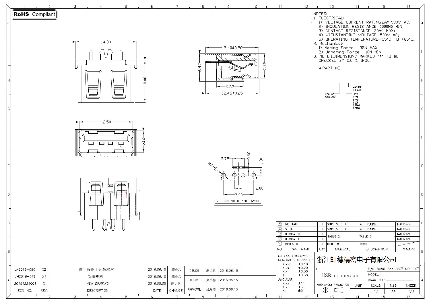 2.0USB插座技術(shù)參數(shù):