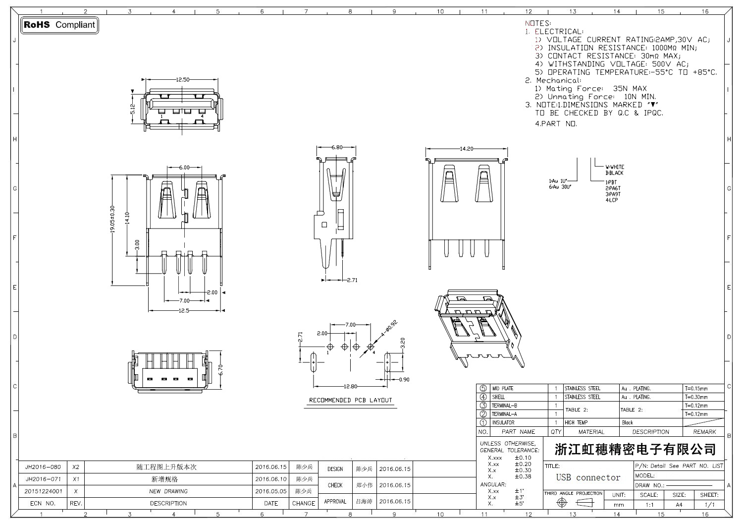Product name:  USB 2.0 Jack connector