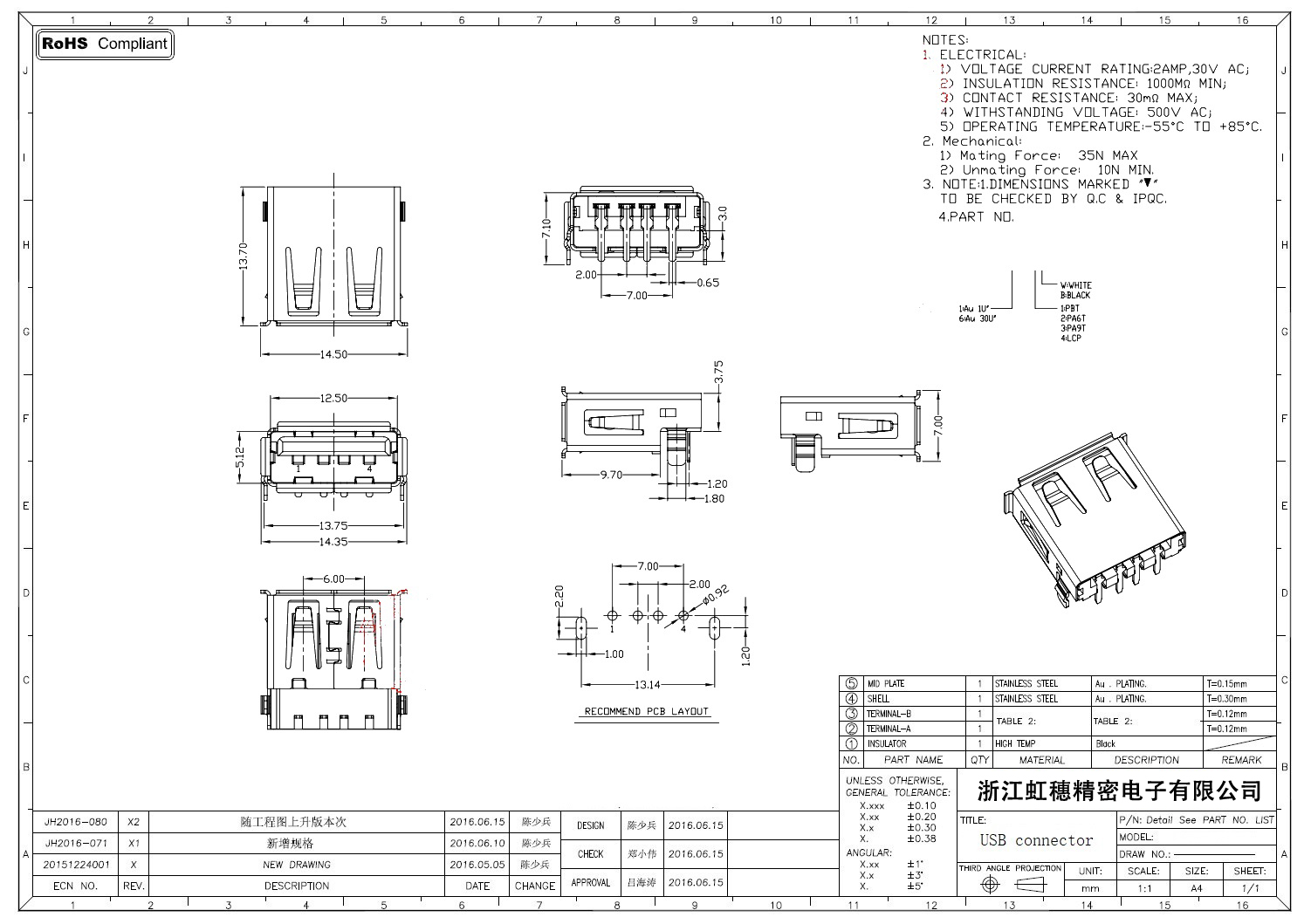 Product name:  USB 2.0 Jack connector