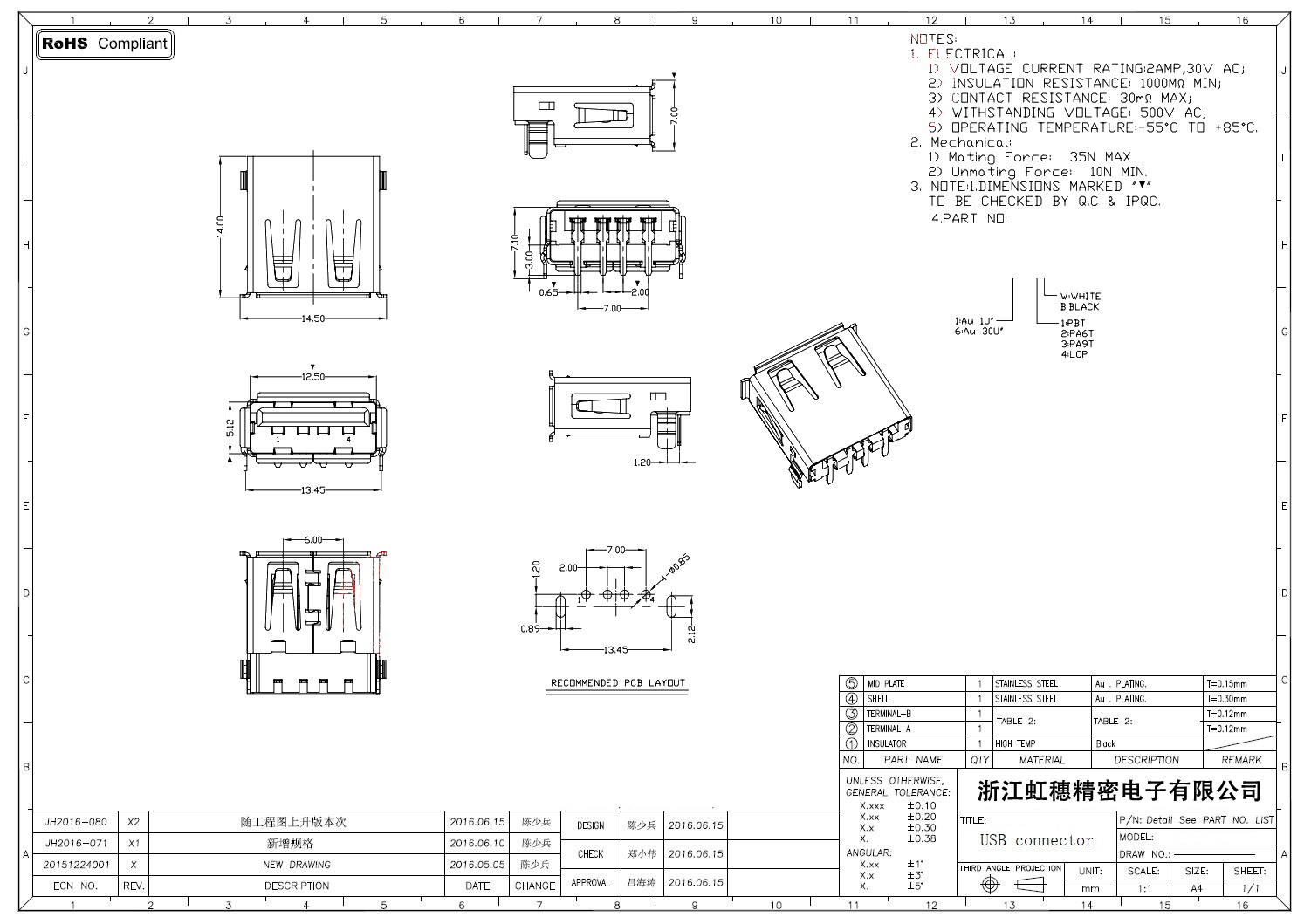 Product name:  USB 2.0 Jack connector