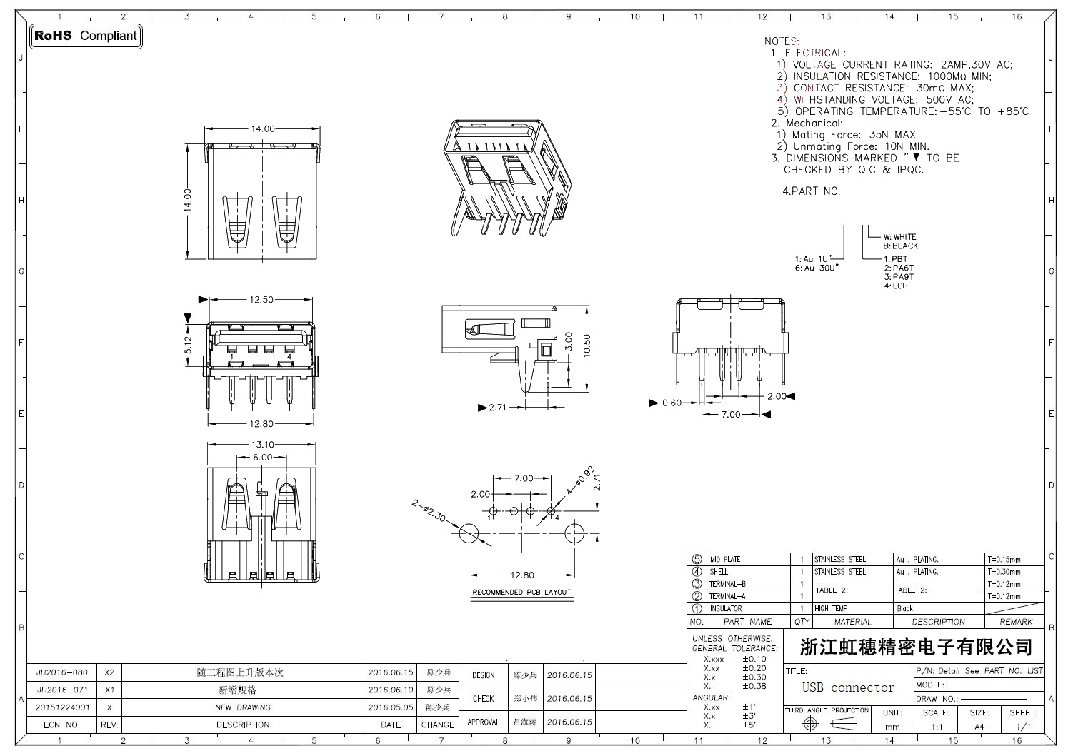 Product name:  USB 2.0 Jack connector