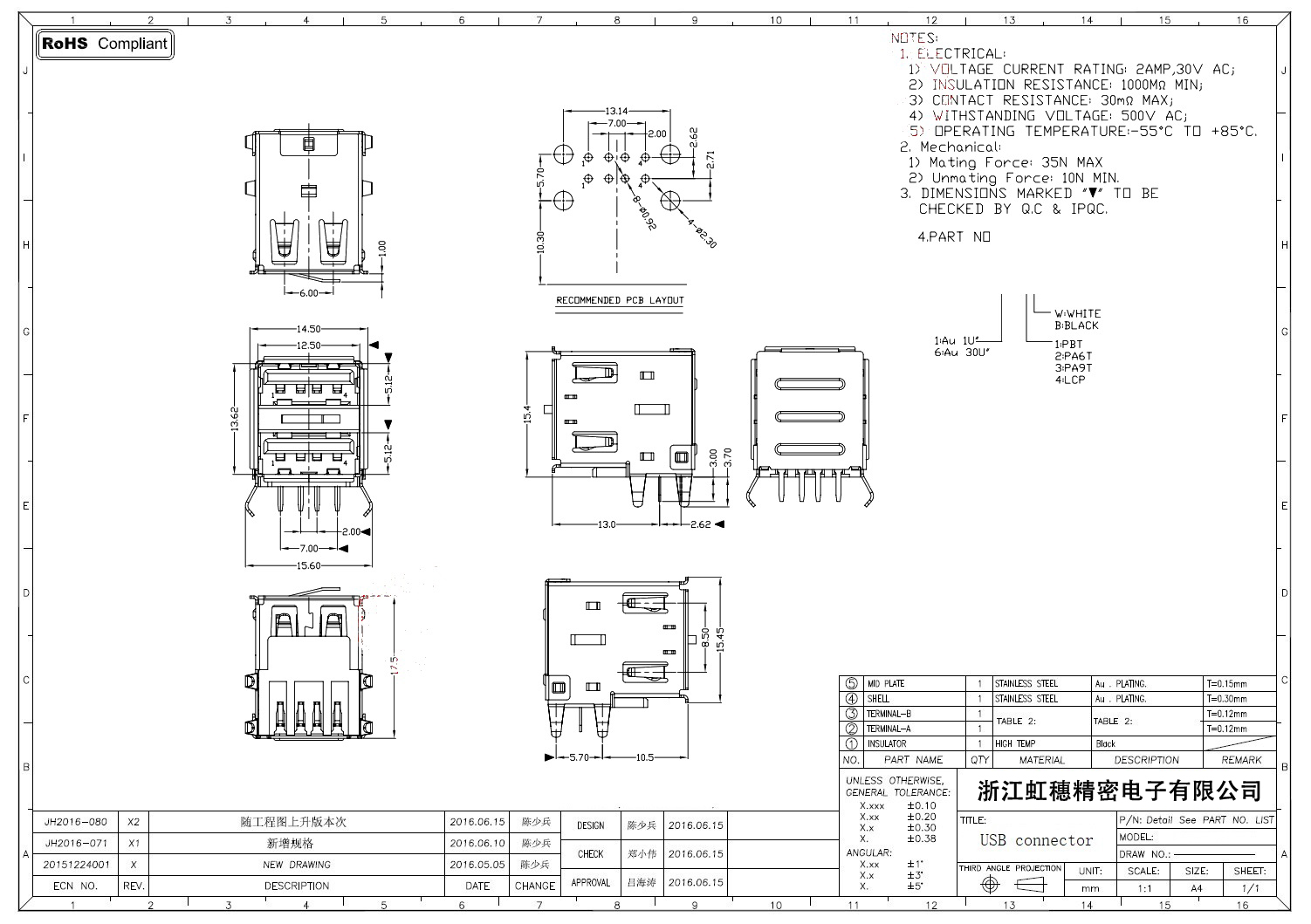 2.0USB插座技術參數(shù):