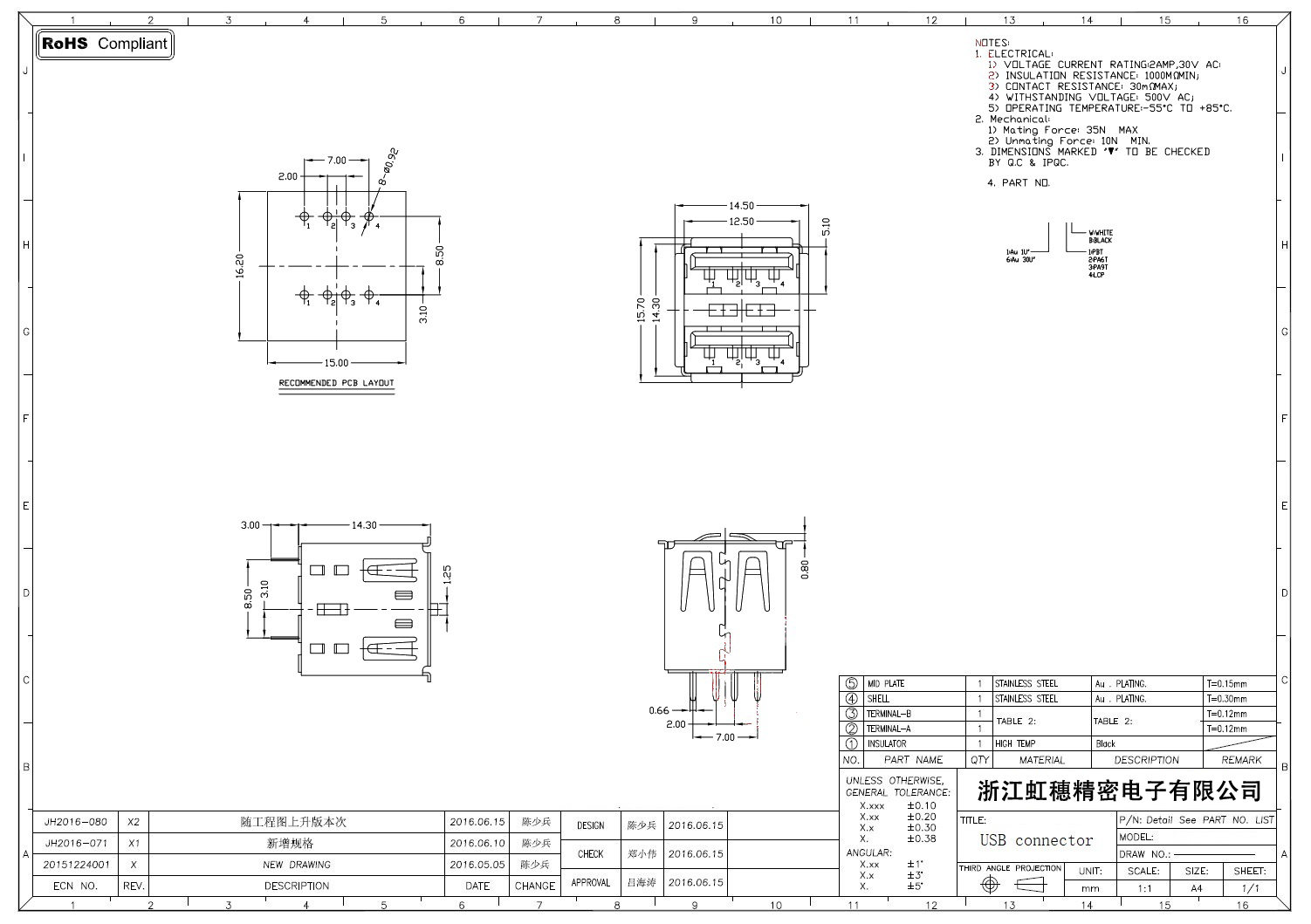 Product name:  USB 2.0 Jack connector