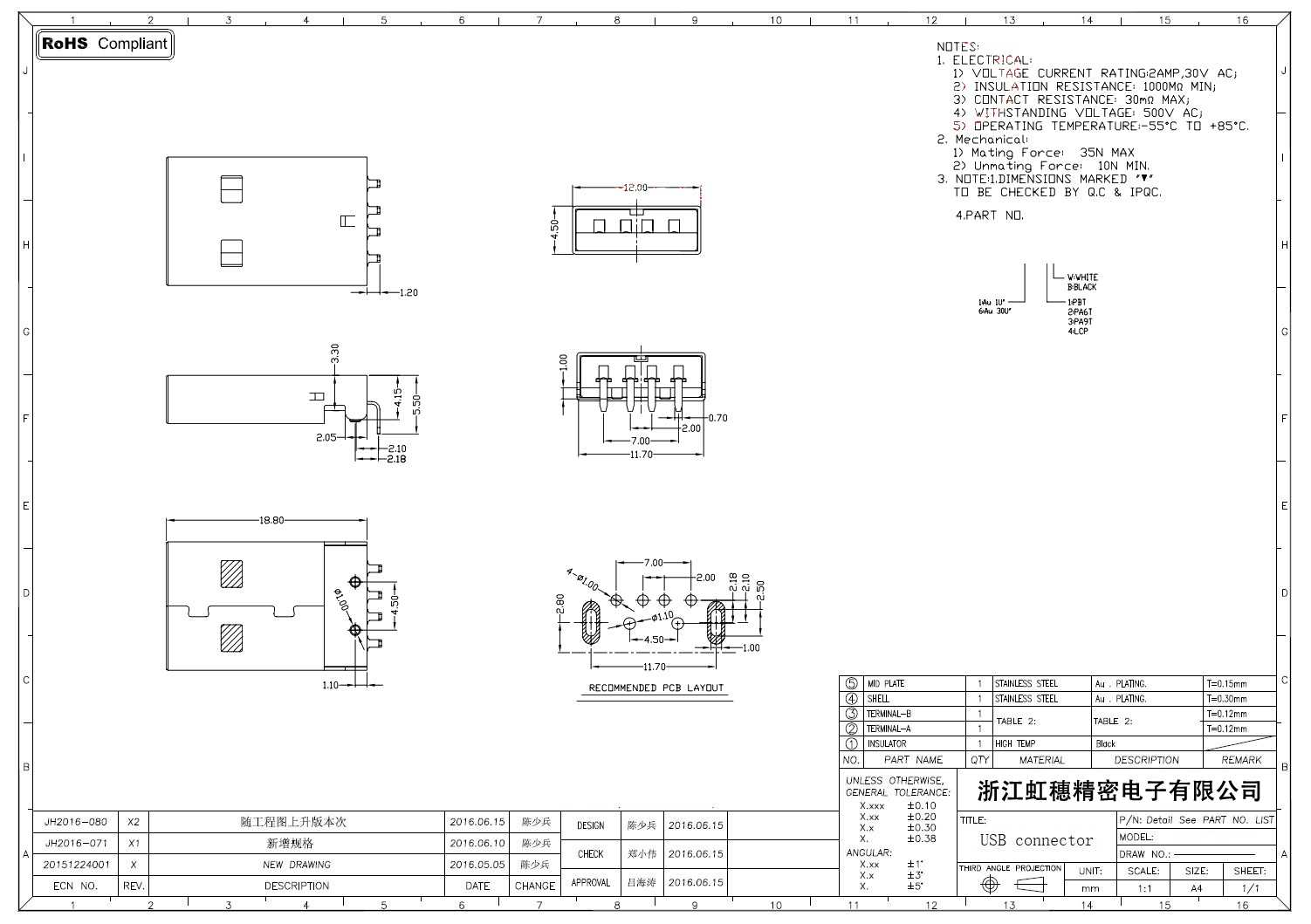 Product name:  USB 2.0 Jack connector