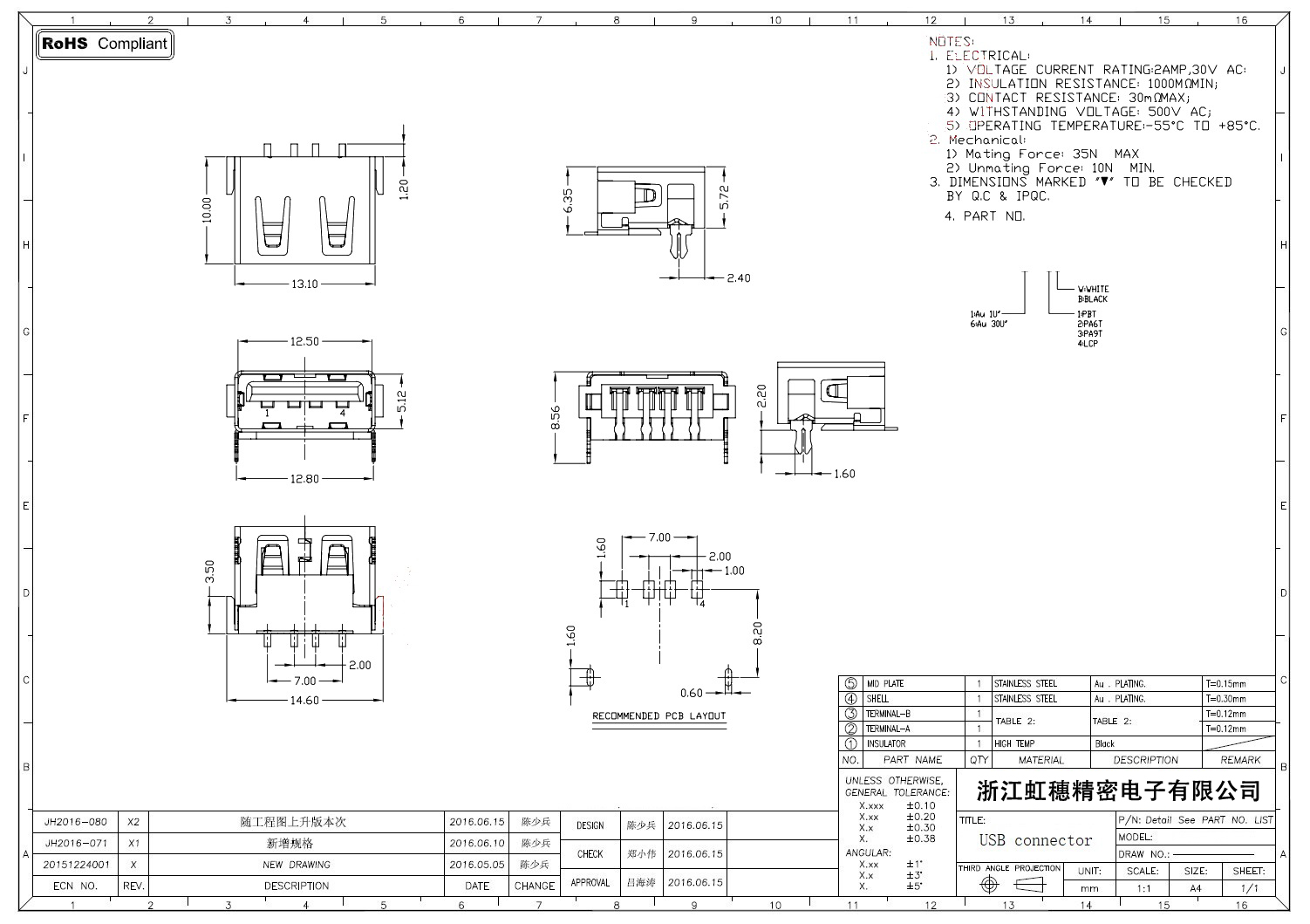 Product name:  USB 2.0 Jack connector