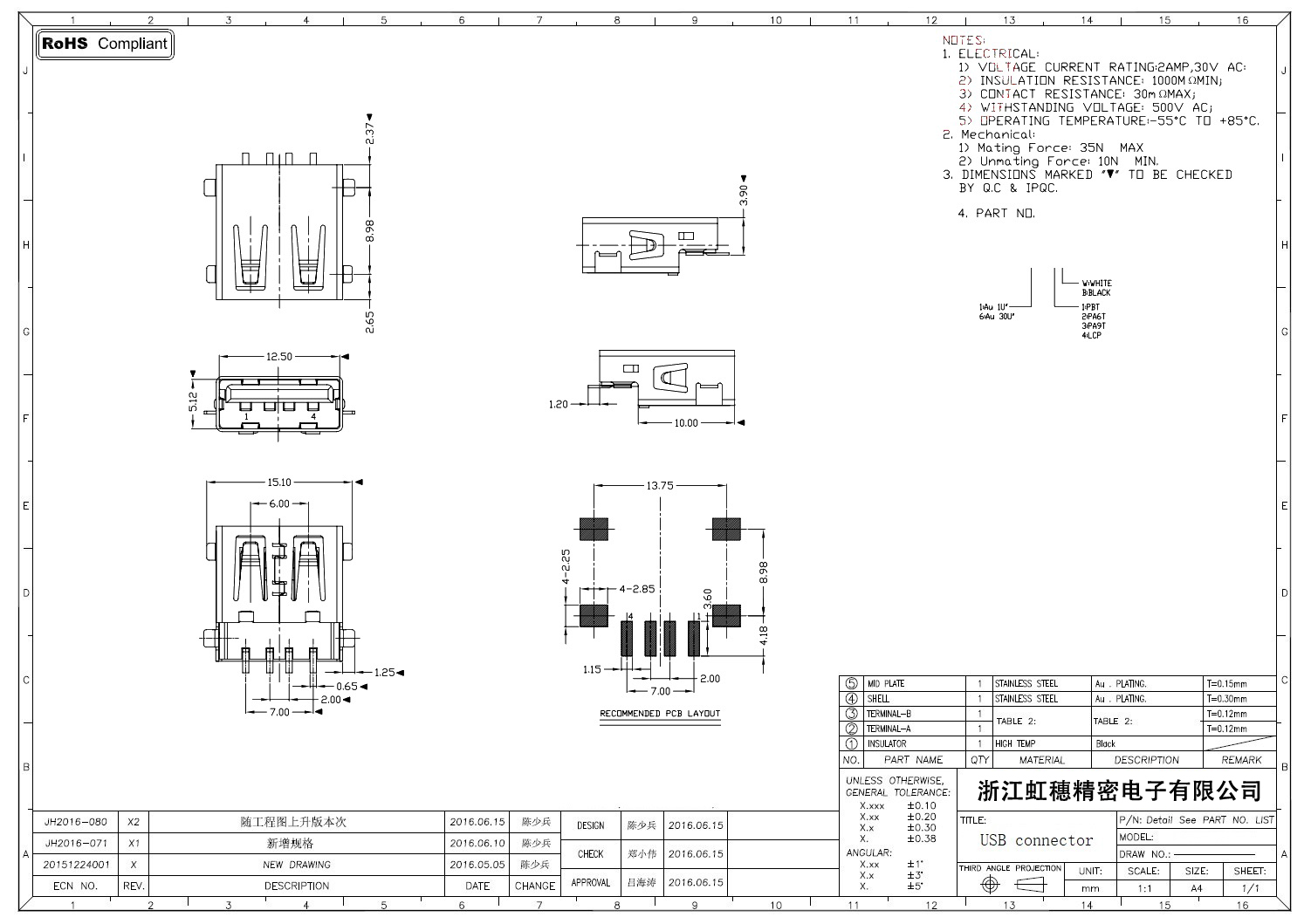 Product name:  USB 2.0 Jack connector
