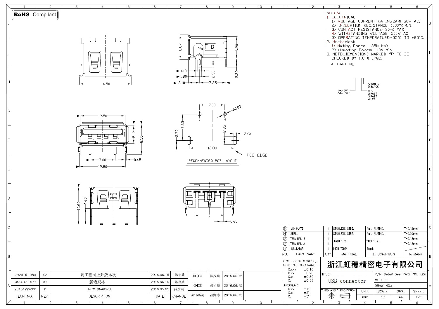 Product name:  USB 2.0 Jack connector