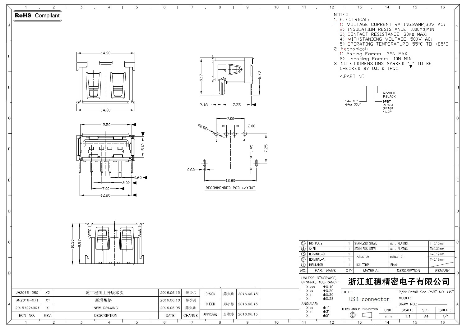 Product name:  USB 2.0 Jack connector