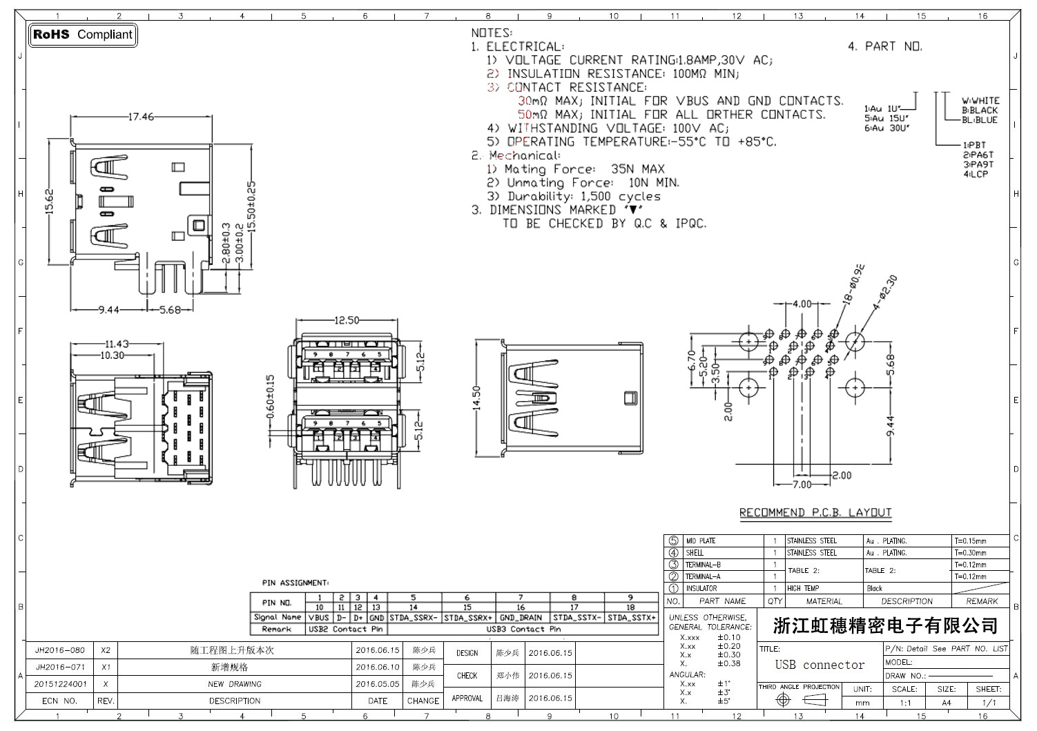 3.0USB插座技術參數: