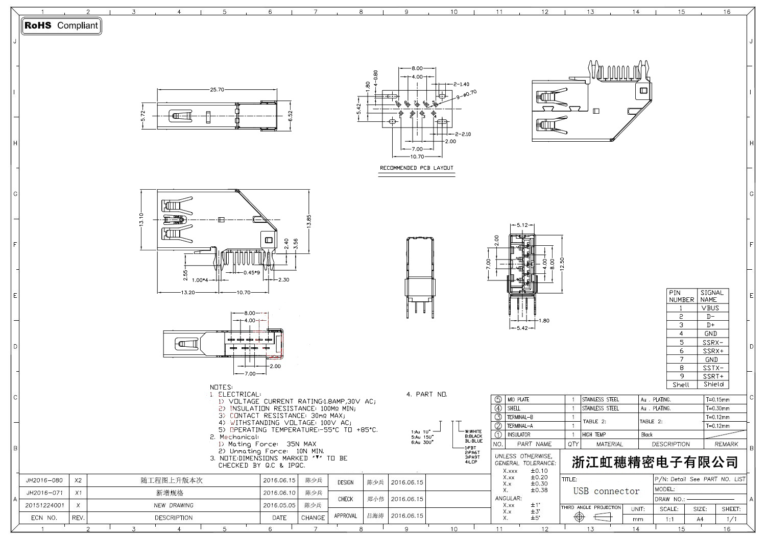 3.0USB插座技術參數: