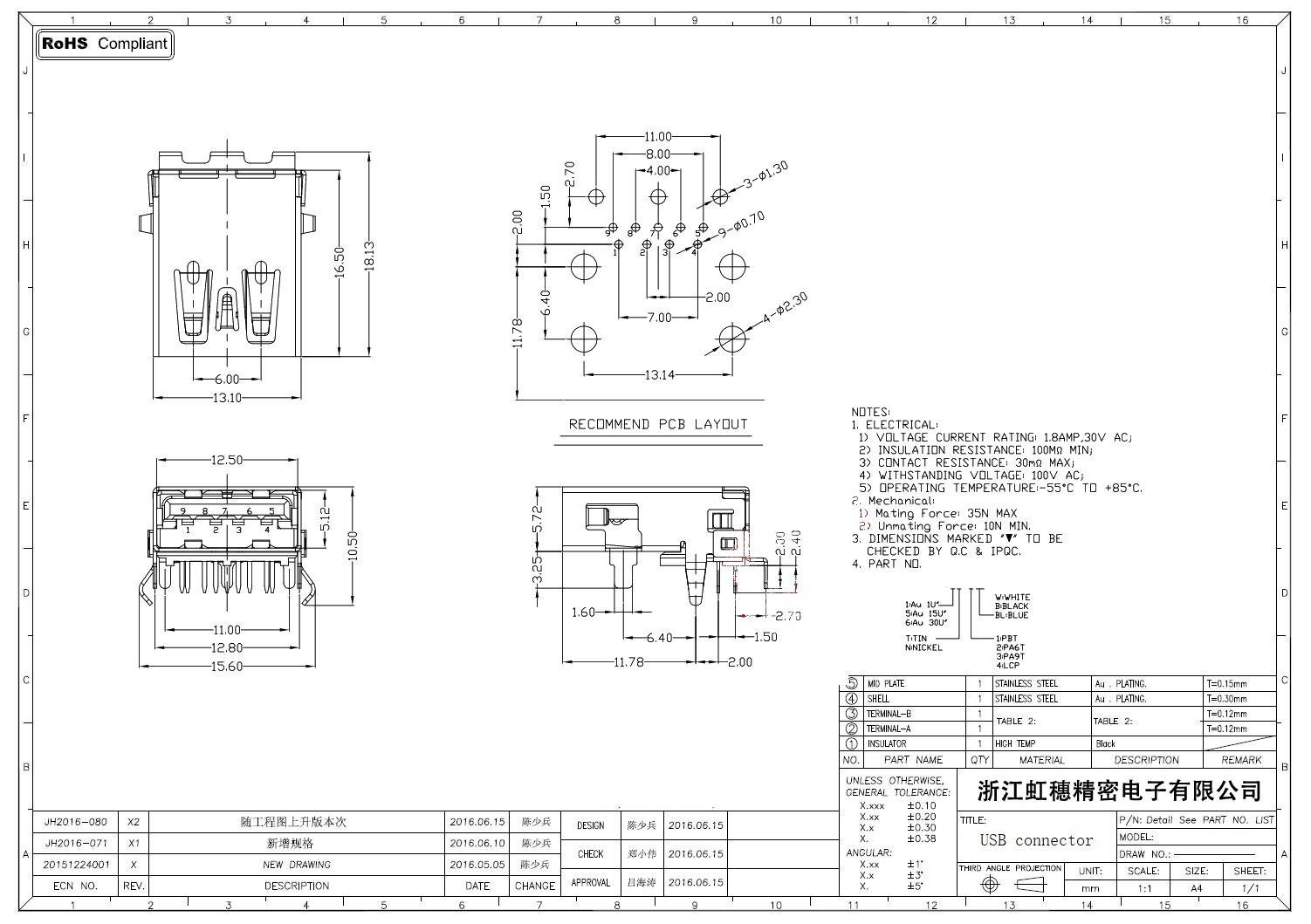 3.0USB插座技術參數: