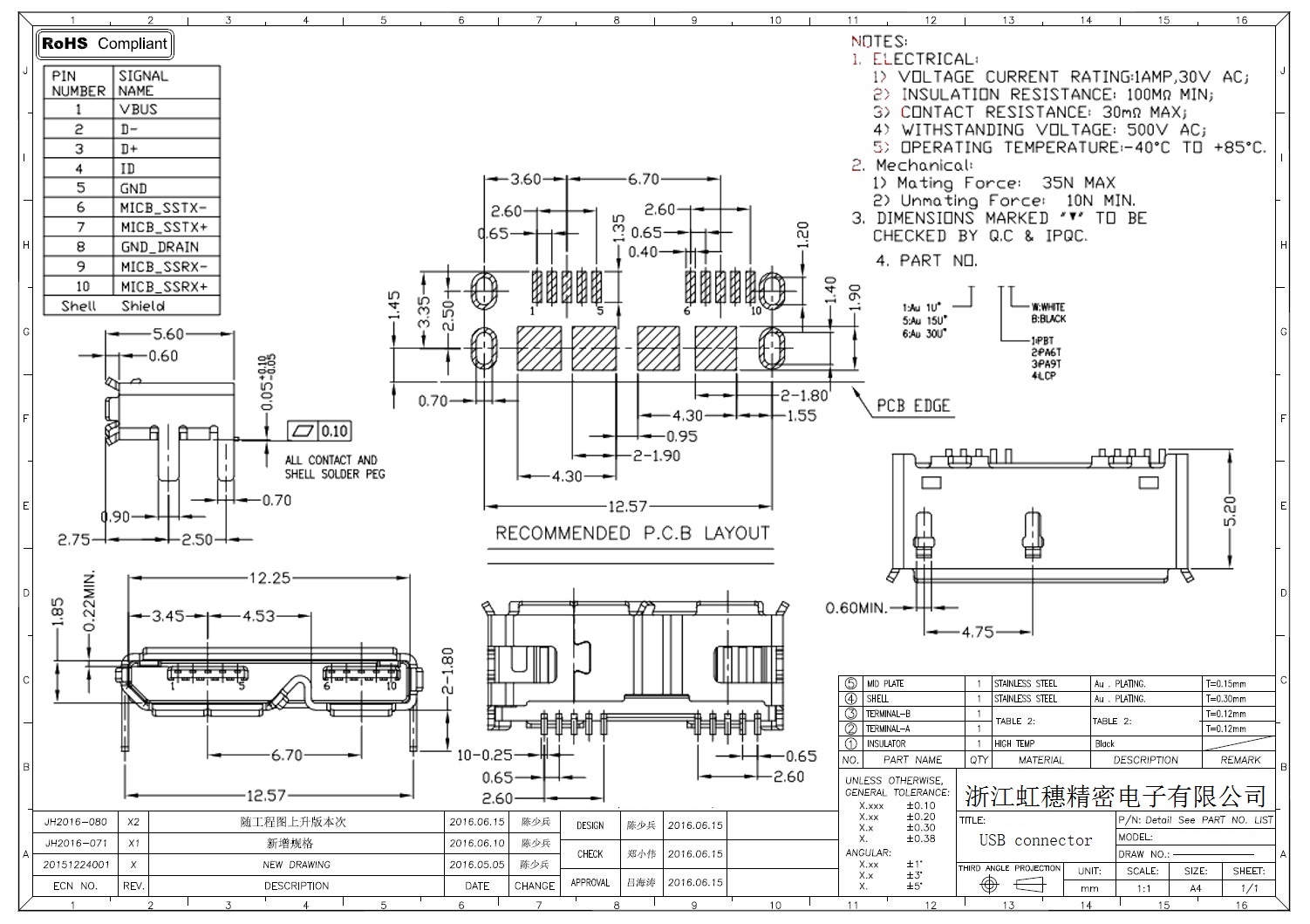 MICRO USB插座技術(shù)參數(shù):