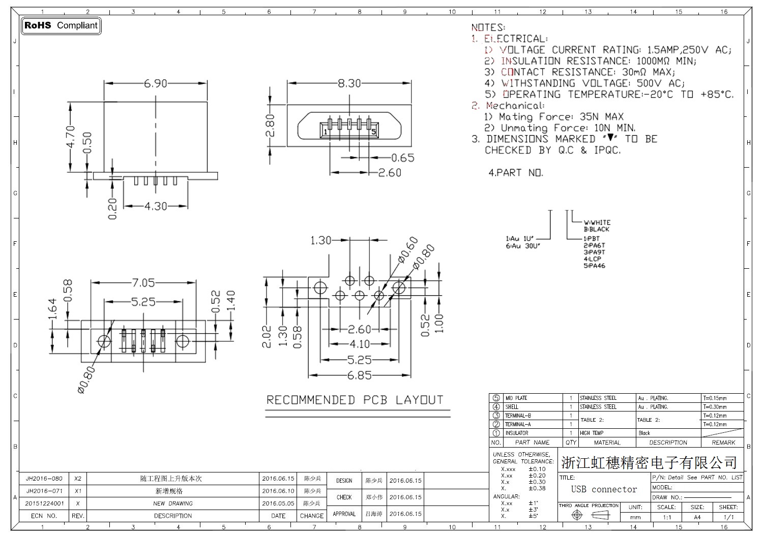 MICRO USB插座技術(shù)參數(shù):