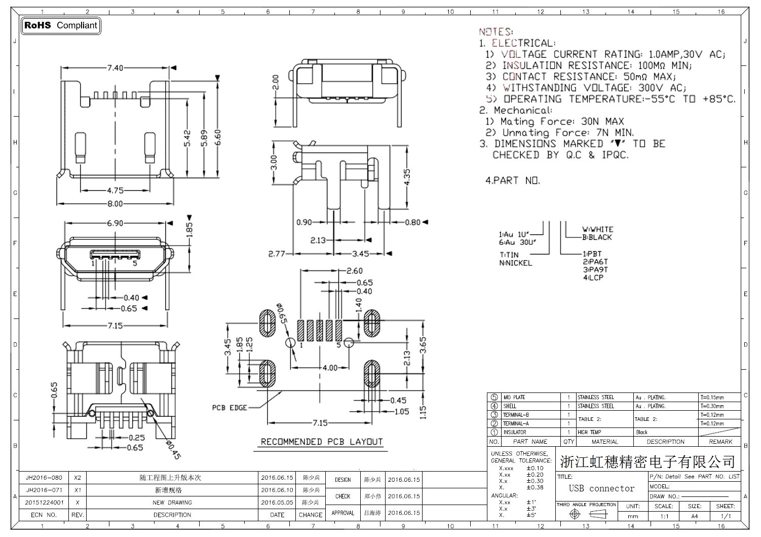MICRO USB插座技術(shù)參數(shù):