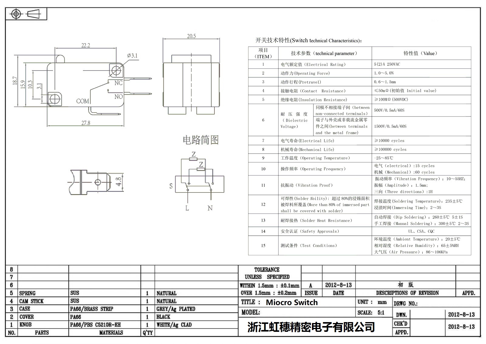 微動開關電氣特性