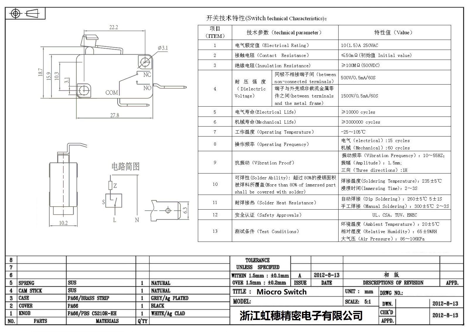 .請根據額定值電流、操作負載、驅動桿的種類、使用溫度等要求選擇合適型號的開關;