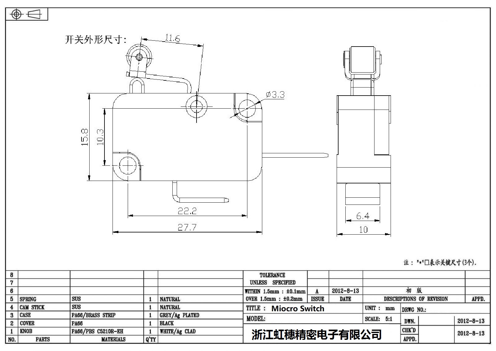 .請根據額定值電流、操作負載、驅動桿的種類、使用溫度等要求選擇合適型號的開關;