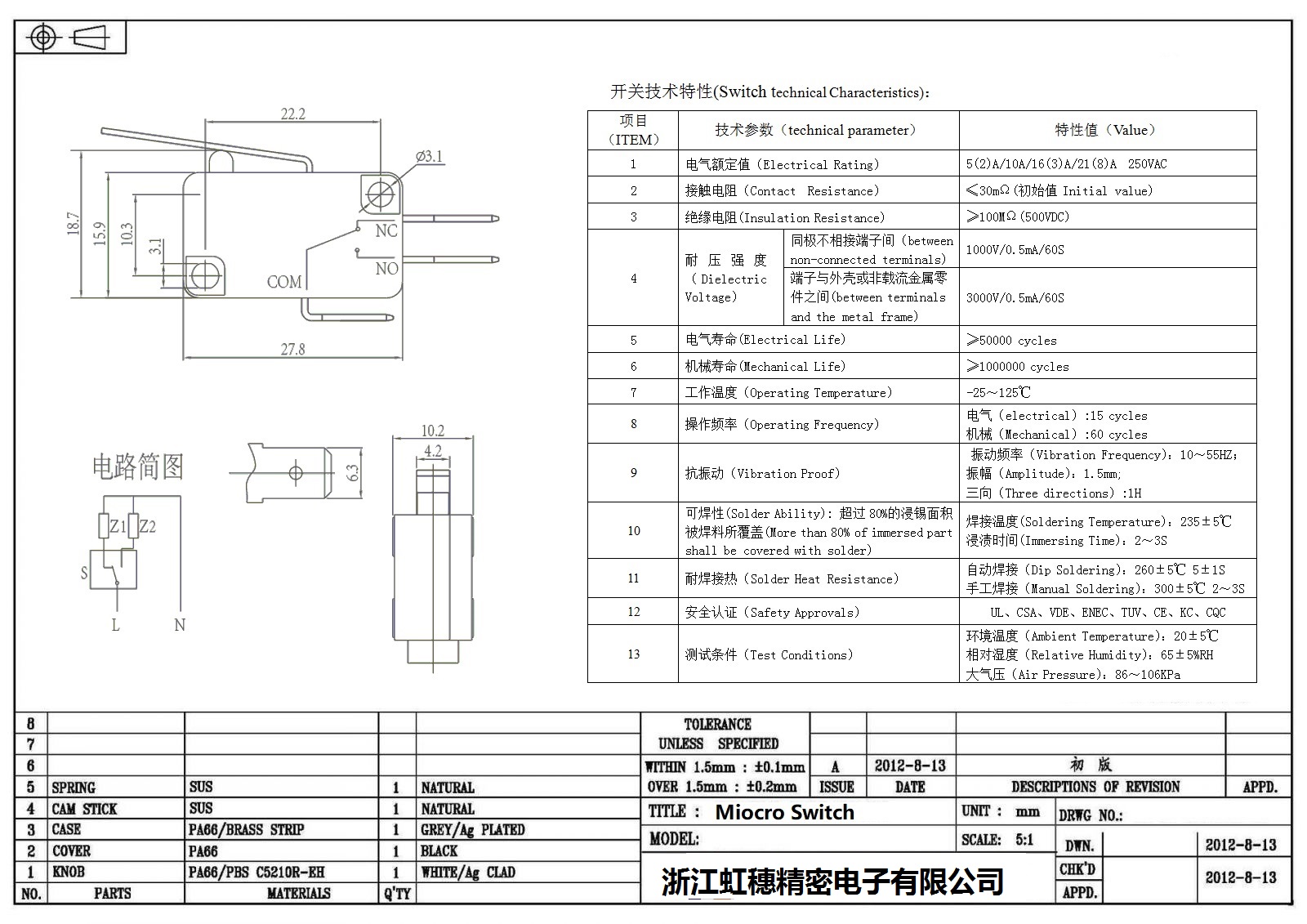 .請根據額定值電流、操作負載、驅動桿的種類、使用溫度等要求選擇合適型號的開關;