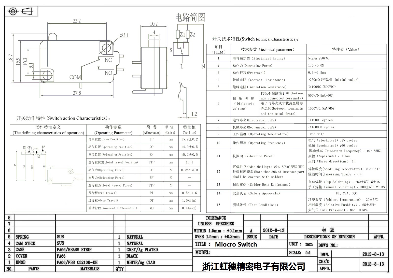 微動開關電氣特性