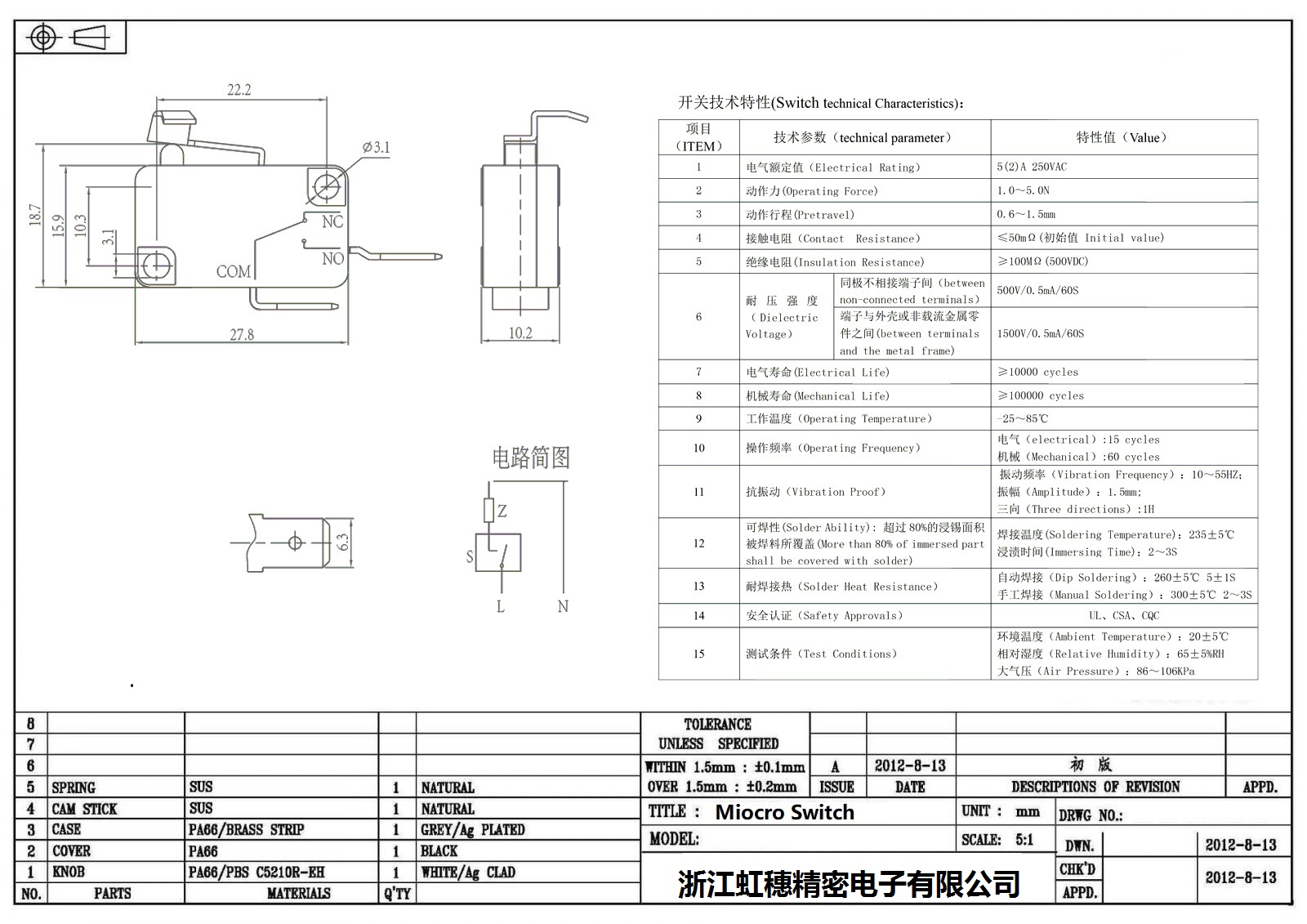微動開關電氣特性