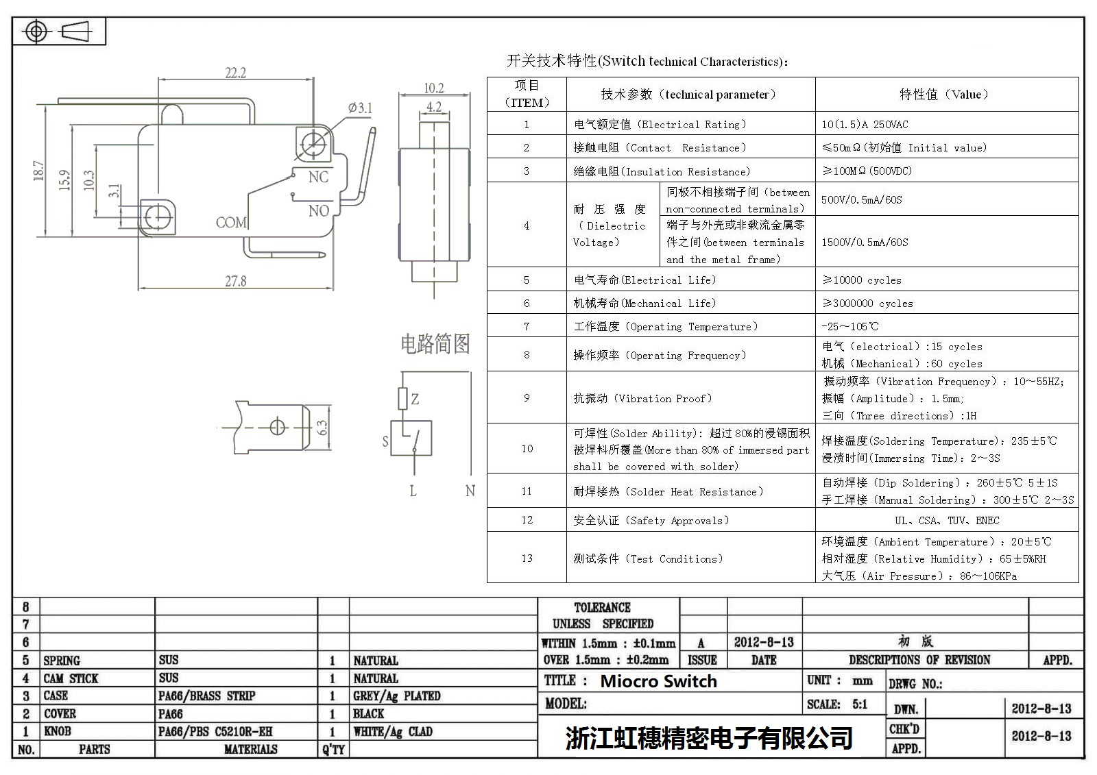 微動開關電氣特性