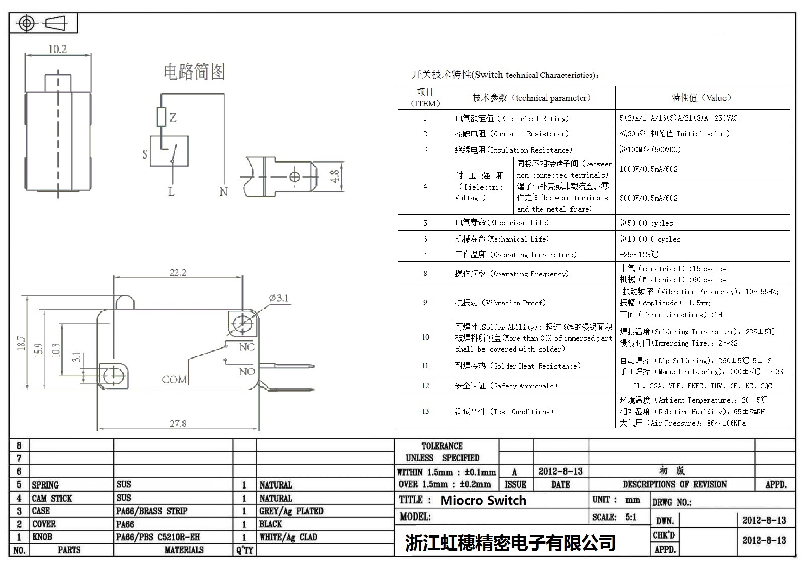 一.請根據額定值電流、操作負載、驅動桿的種類、使用溫度等要求選擇合適型號的開關;
