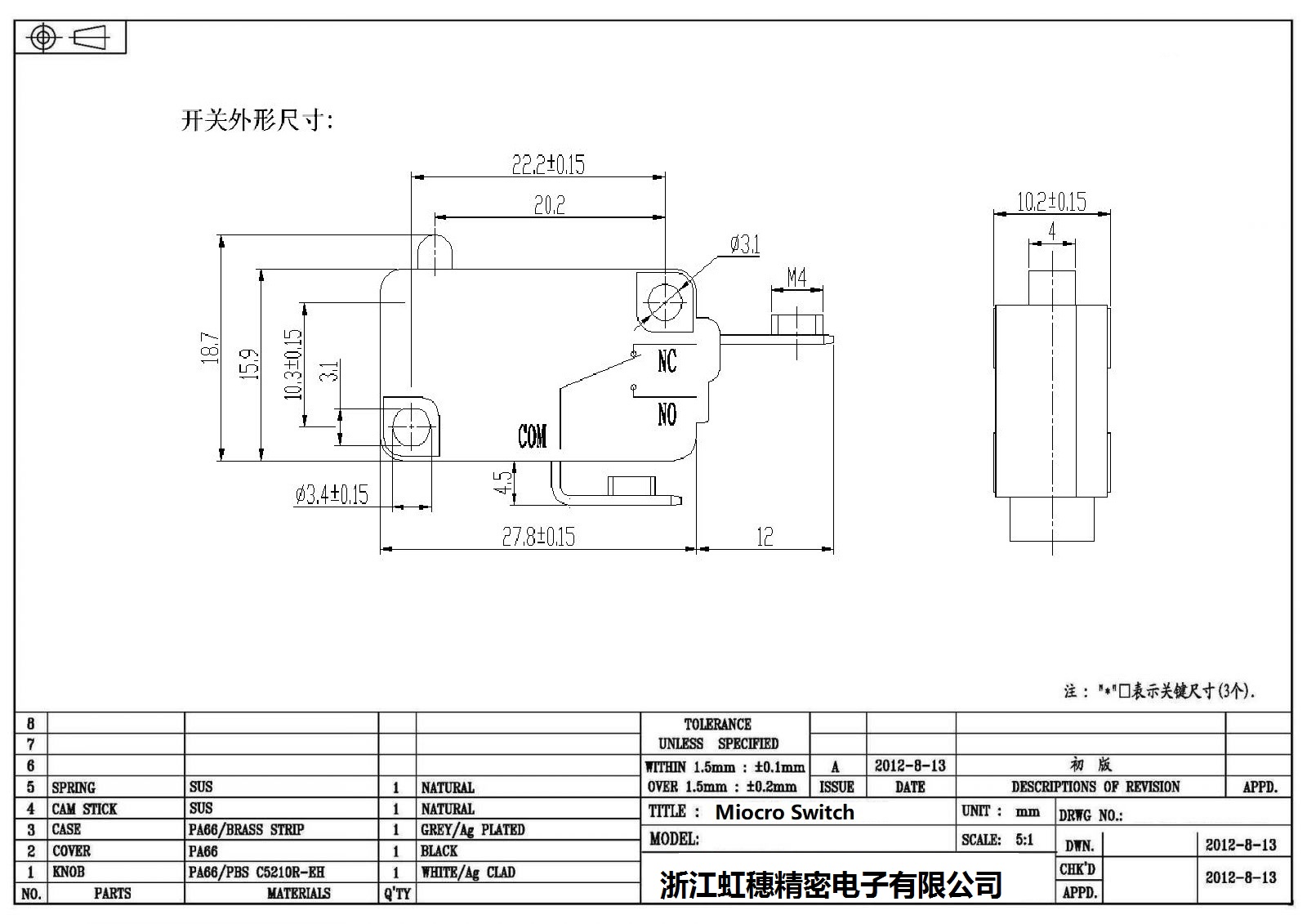 .請根據額定值電流、操作負載、驅動桿的種類、使用溫度等要求選擇合適型號的開關;