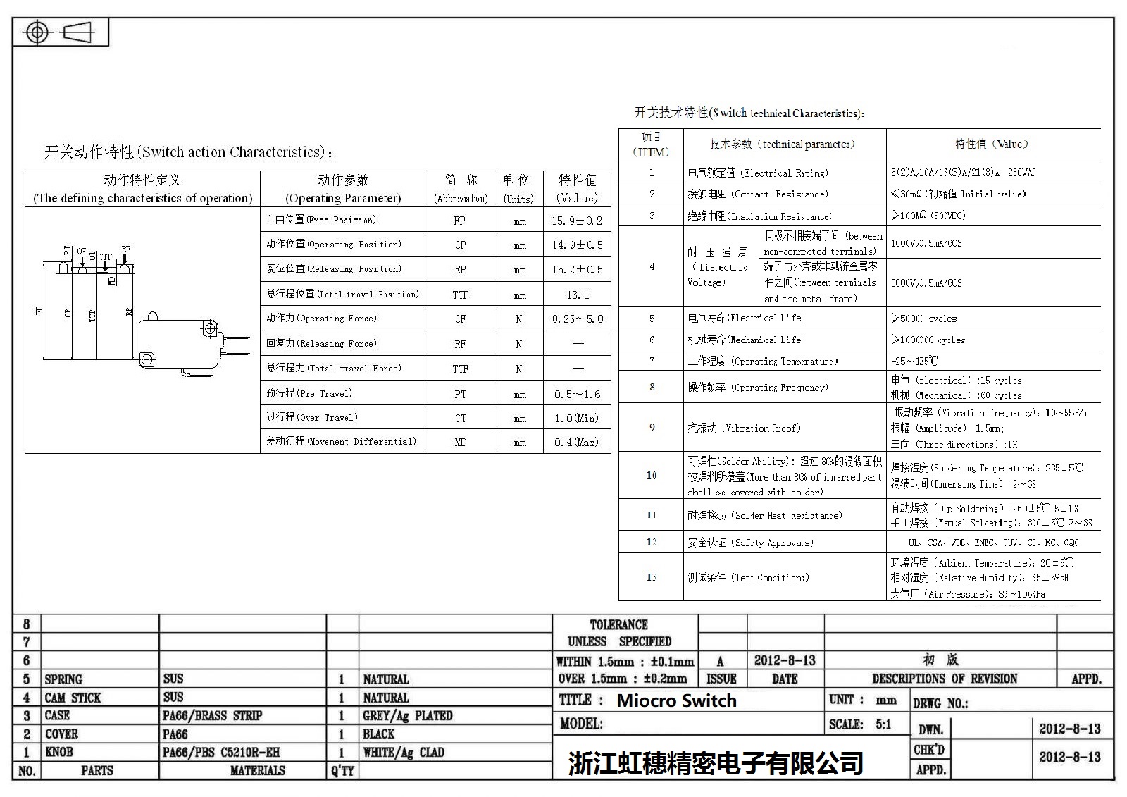 .請根據(jù)額定值電流、操作負(fù)載、驅(qū)動桿的種類、使用溫度等要求選擇合適型號的開關(guān);