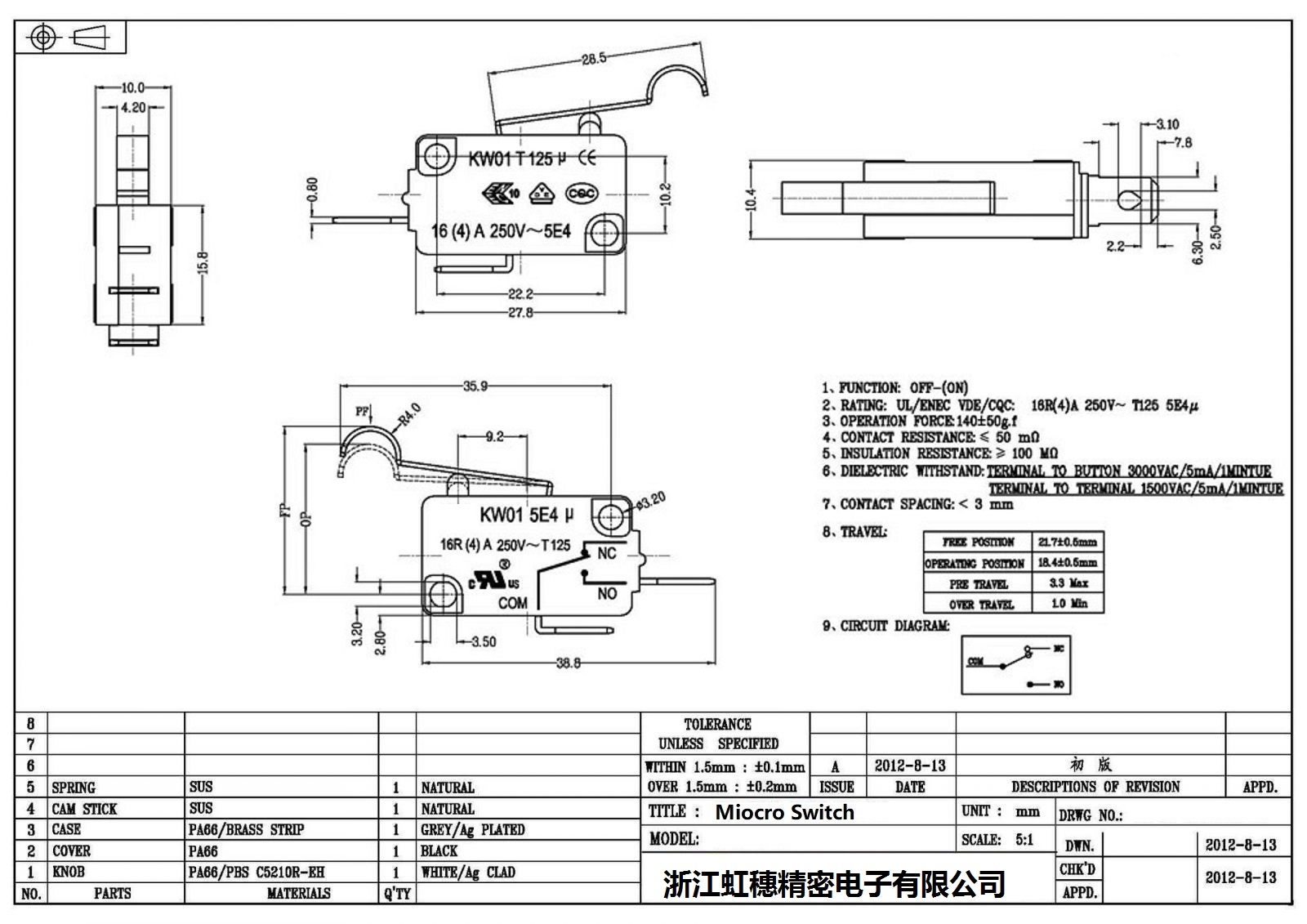 6、絕緣耐壓:TBRMINAL TDO BUTTON 3000VAC/5mA/1MINTUB