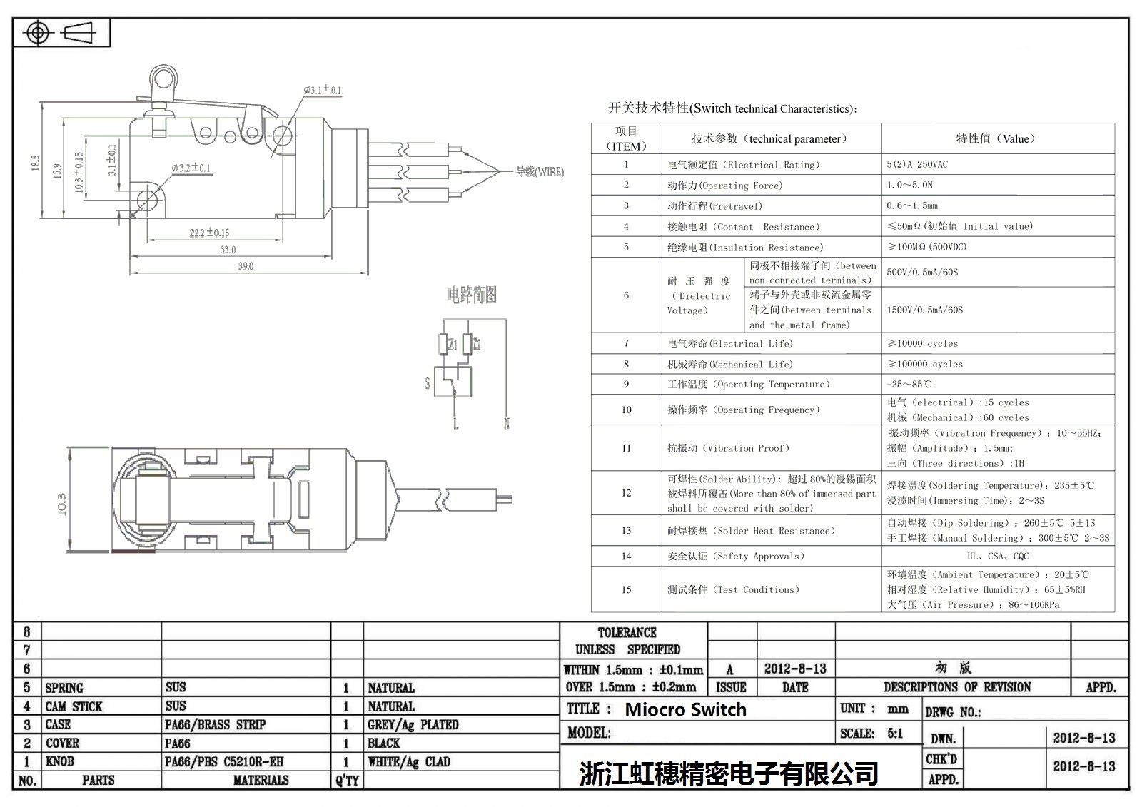 微動(dòng)開(kāi)關(guān)電氣特性