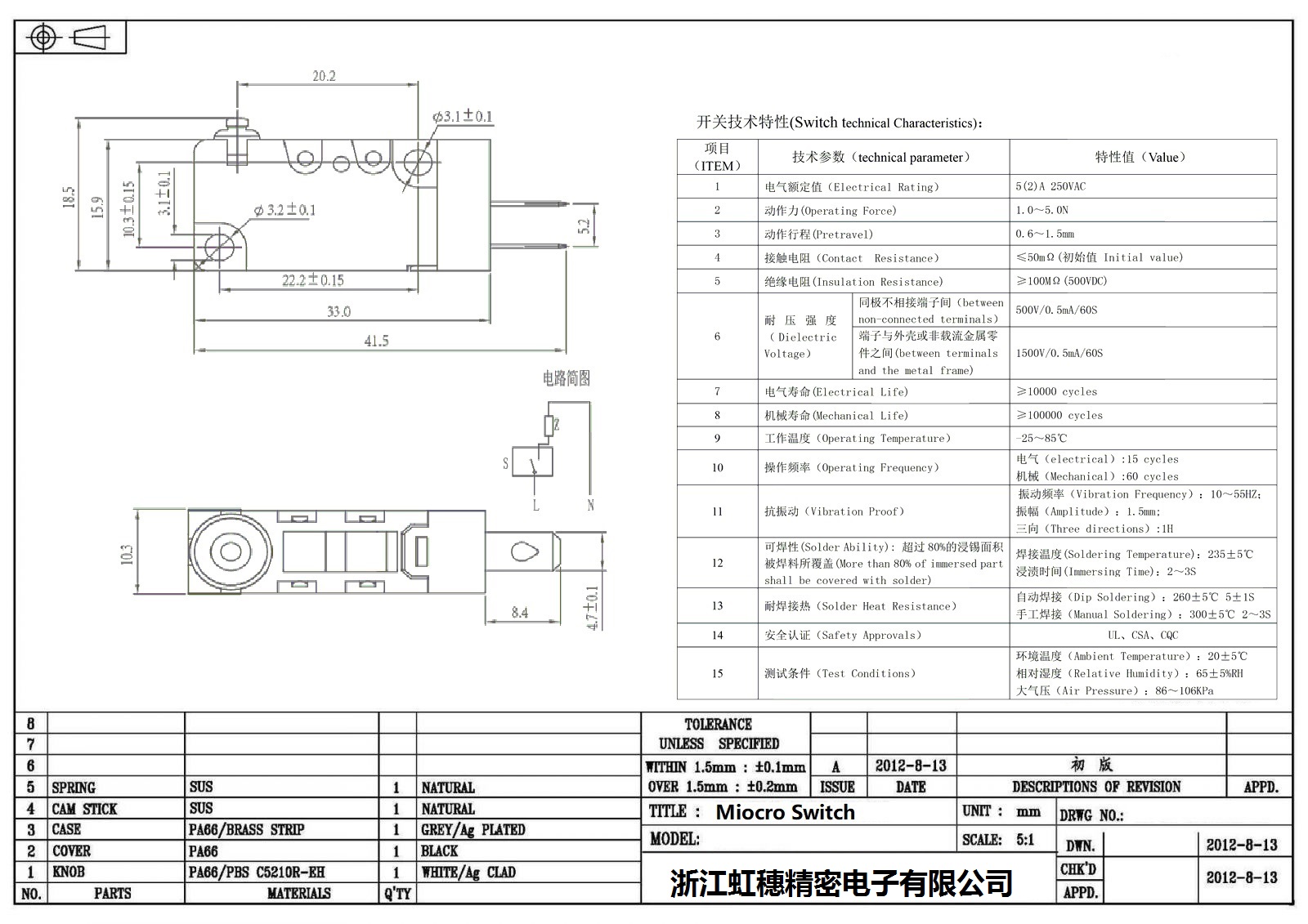 微動開關電氣特性