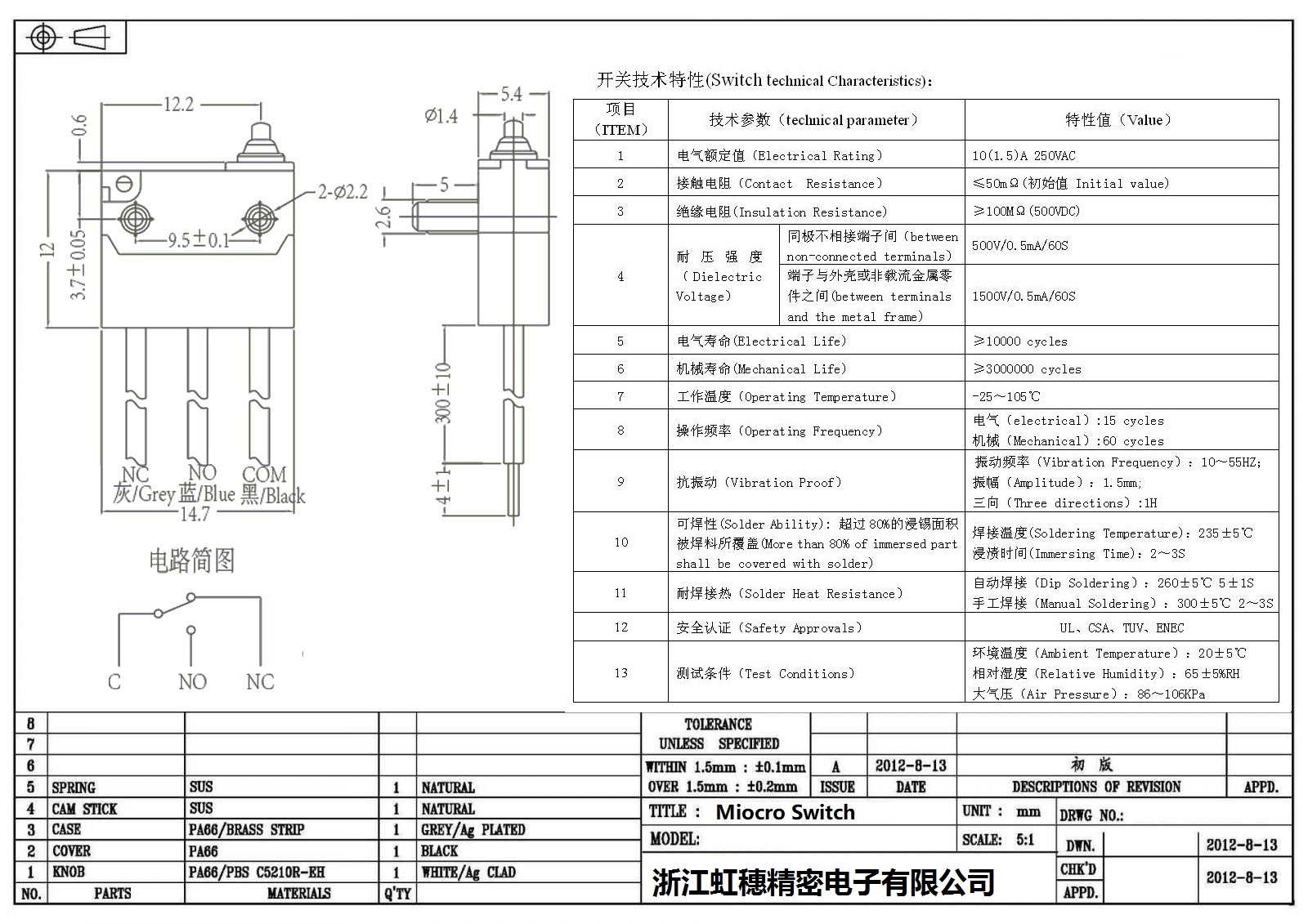 微動開關電氣特性