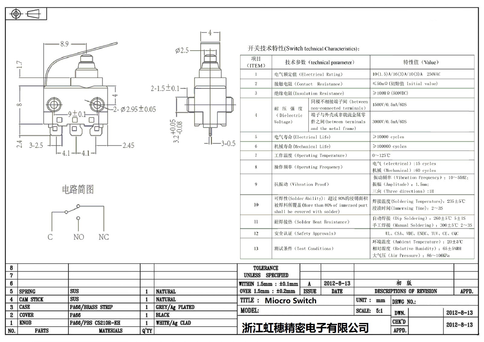 微動開關電氣特性
