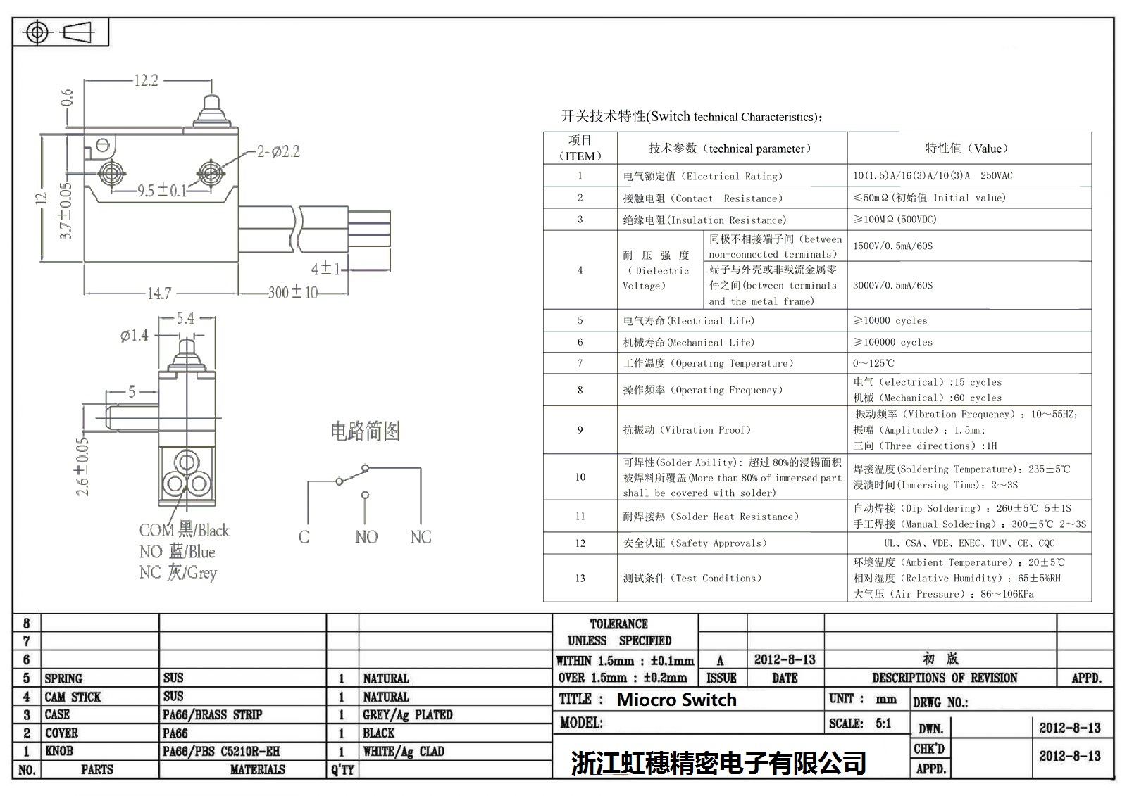 .請根據額定值電流、操作負載、驅動桿的種類、使用溫度等要求選擇合適型號的開關;