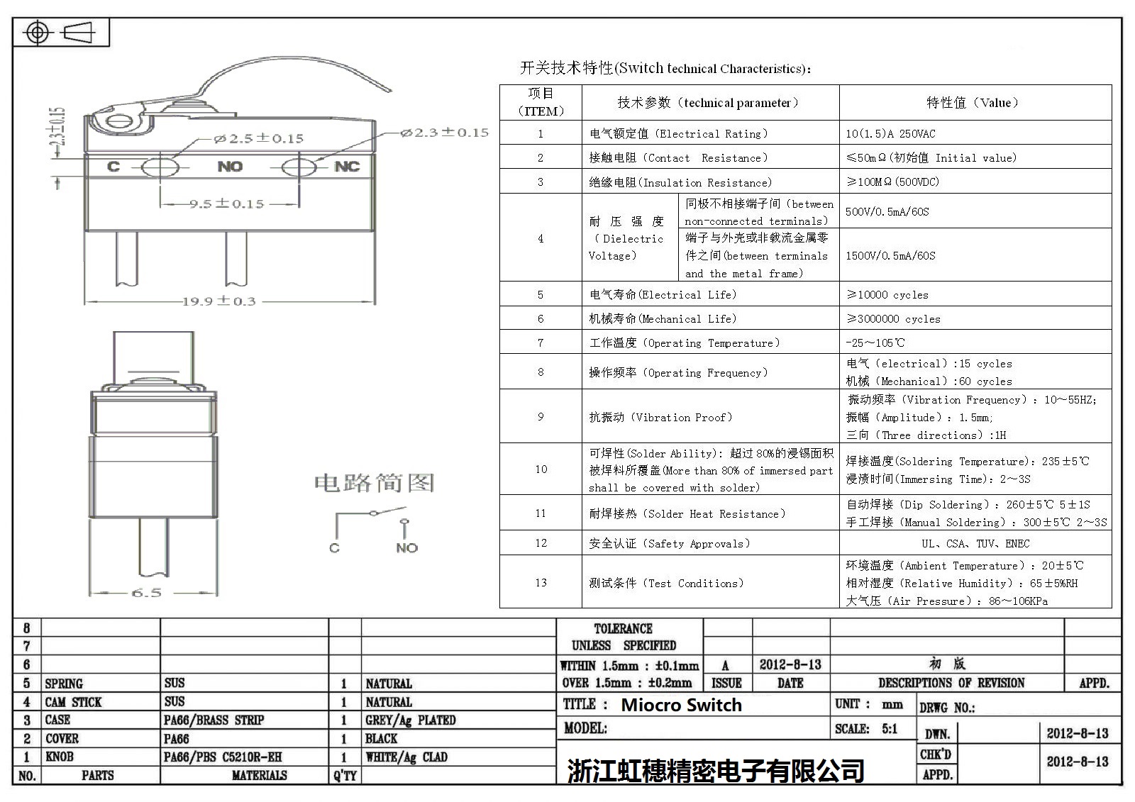 .請根據(jù)額定值電流、操作負(fù)載、驅(qū)動桿的種類、使用溫度等要求選擇合適型號的開關(guān);