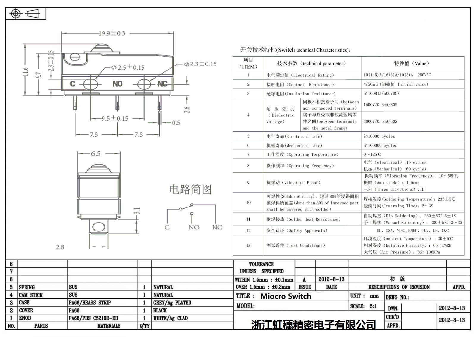 .請根據(jù)額定值電流、操作負載、驅動桿的種類、使用溫度等要求選擇合適型號的開關;