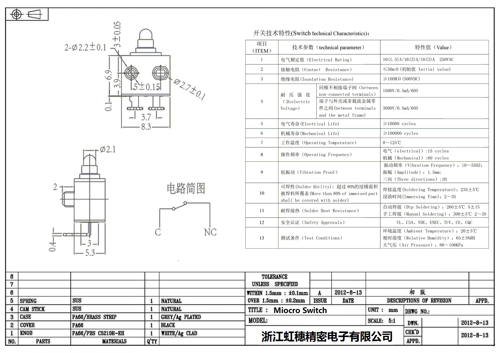微動開關電氣特性