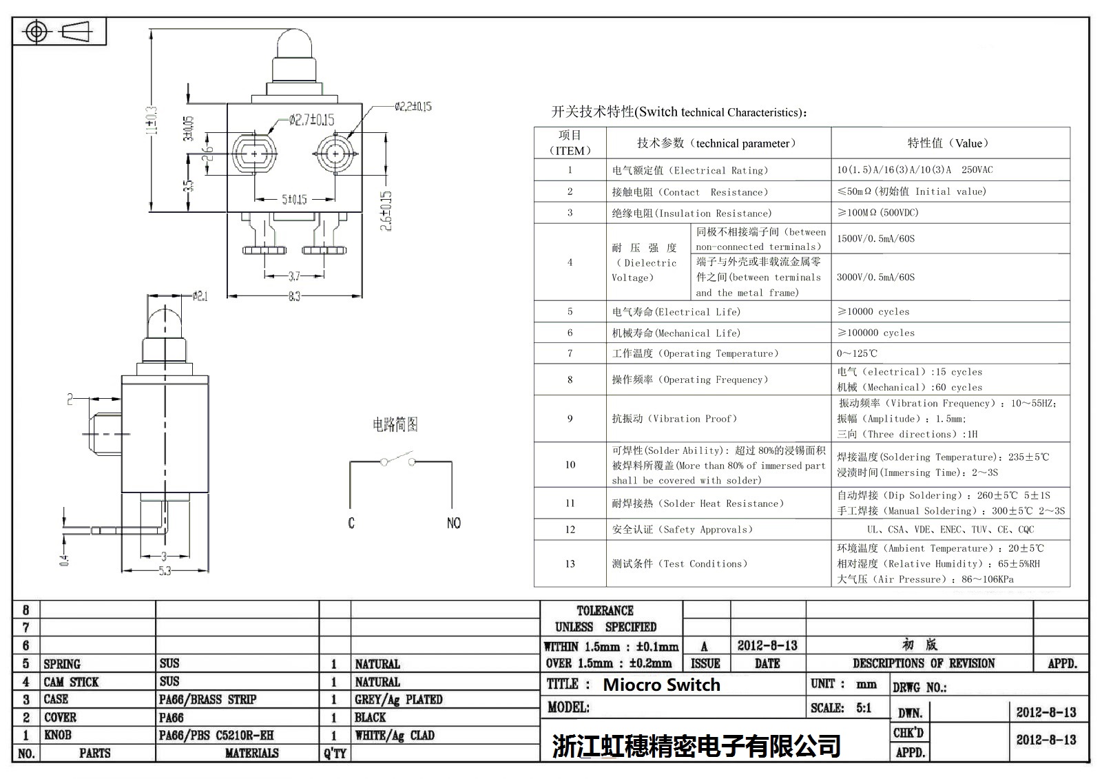 1.額定負(fù)荷: DC 30V 125V 250V 1A 5A 10A 16A