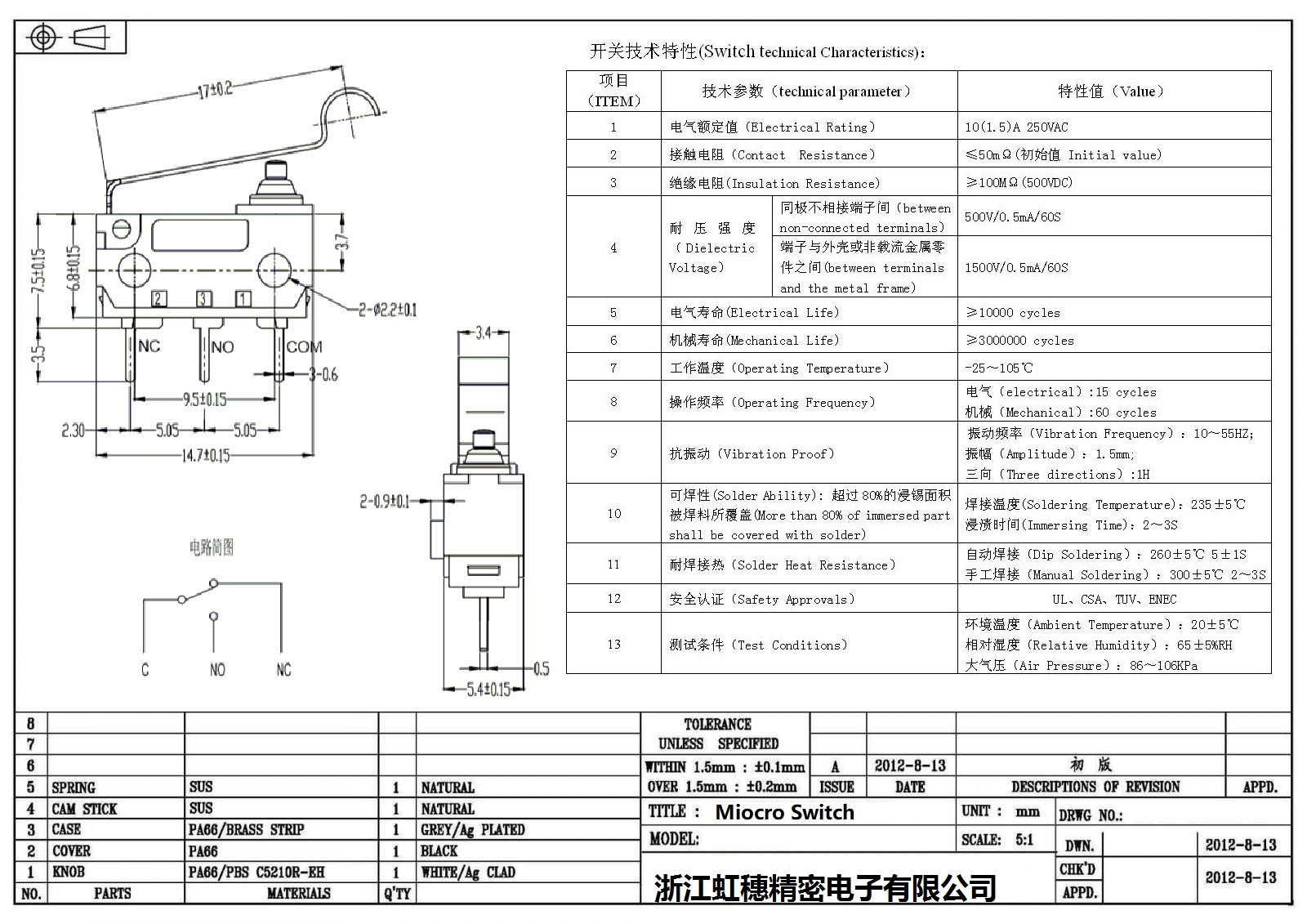 .請根據額定值電流、操作負載、驅動桿的種類、使用溫度等要求選擇合適型號的開關;