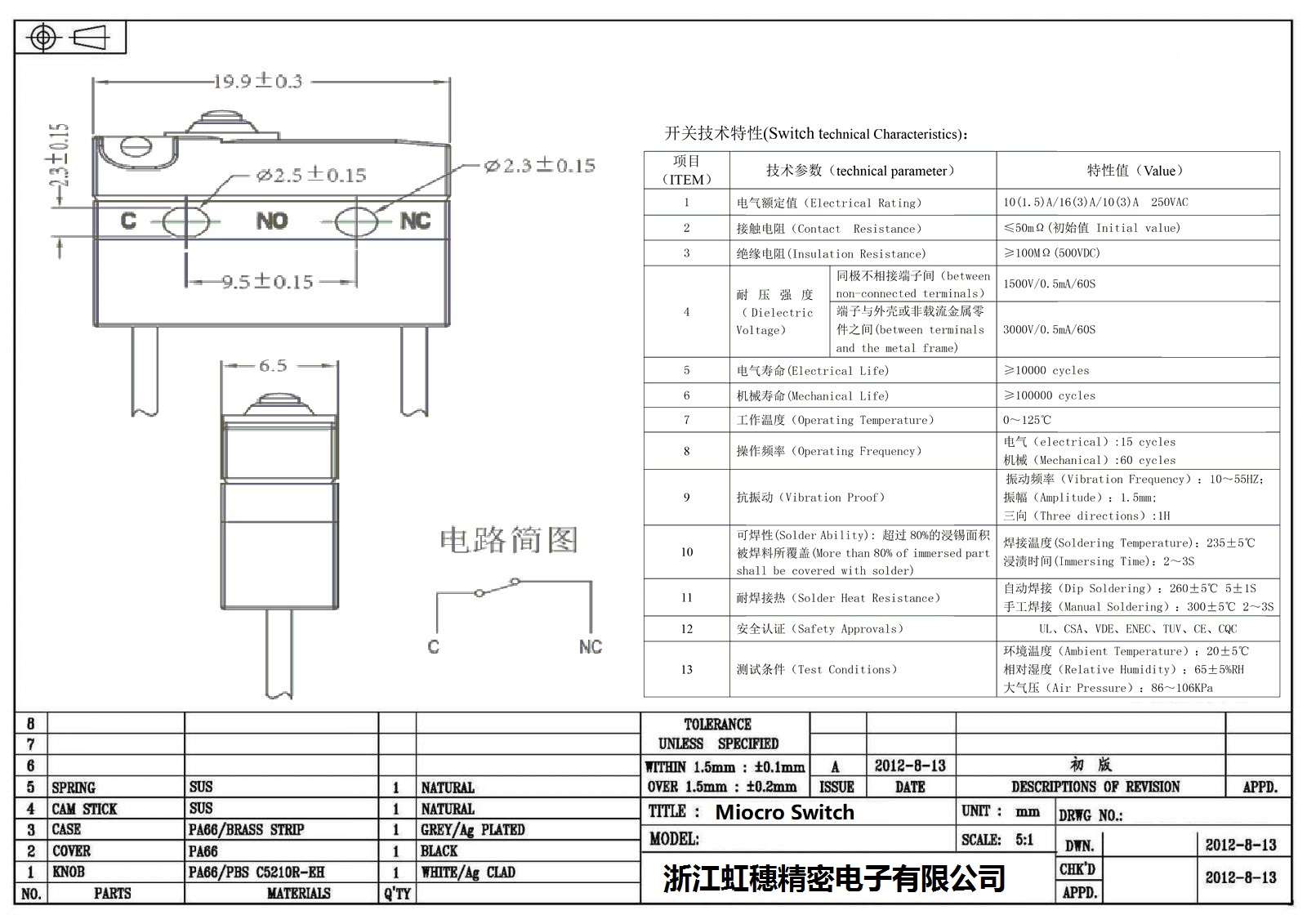.請根據(jù)額定值電流、操作負載、驅(qū)動桿的種類、使用溫度等要求選擇合適型號的開關(guān);