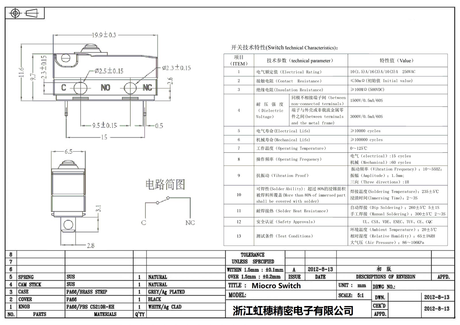 微動(dòng)開(kāi)關(guān)電氣特性