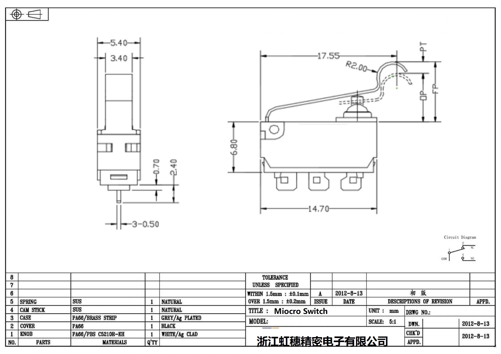 .請根據額定值電流、操作負載、驅動桿的種類、使用溫度等要求選擇合適型號的開關;