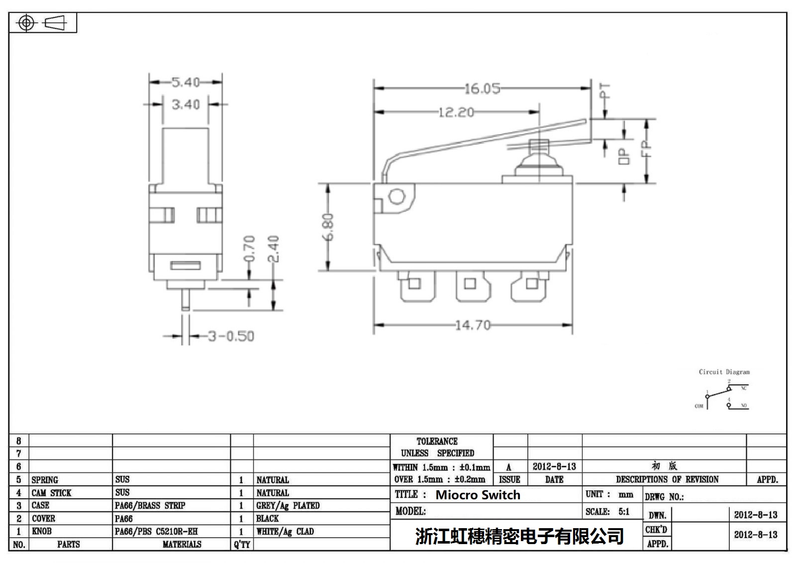 微動開關電氣特性