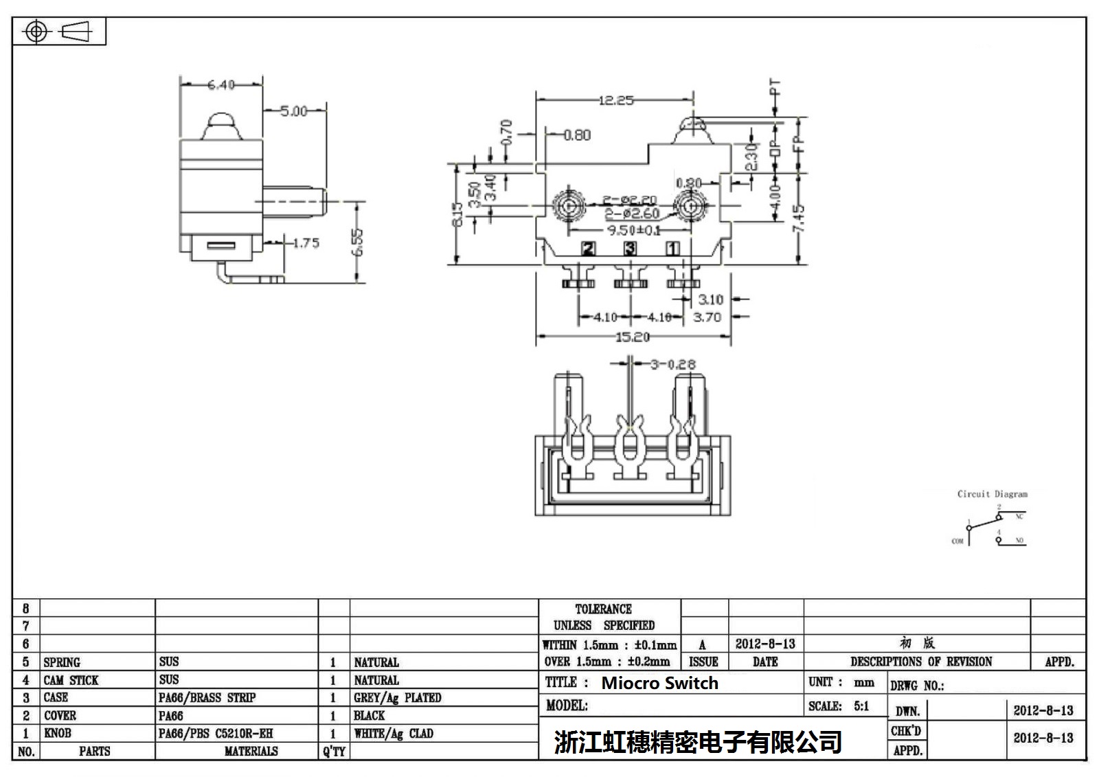.請根據額定值電流、操作負載、驅動桿的種類、使用溫度等要求選擇合適型號的開關;