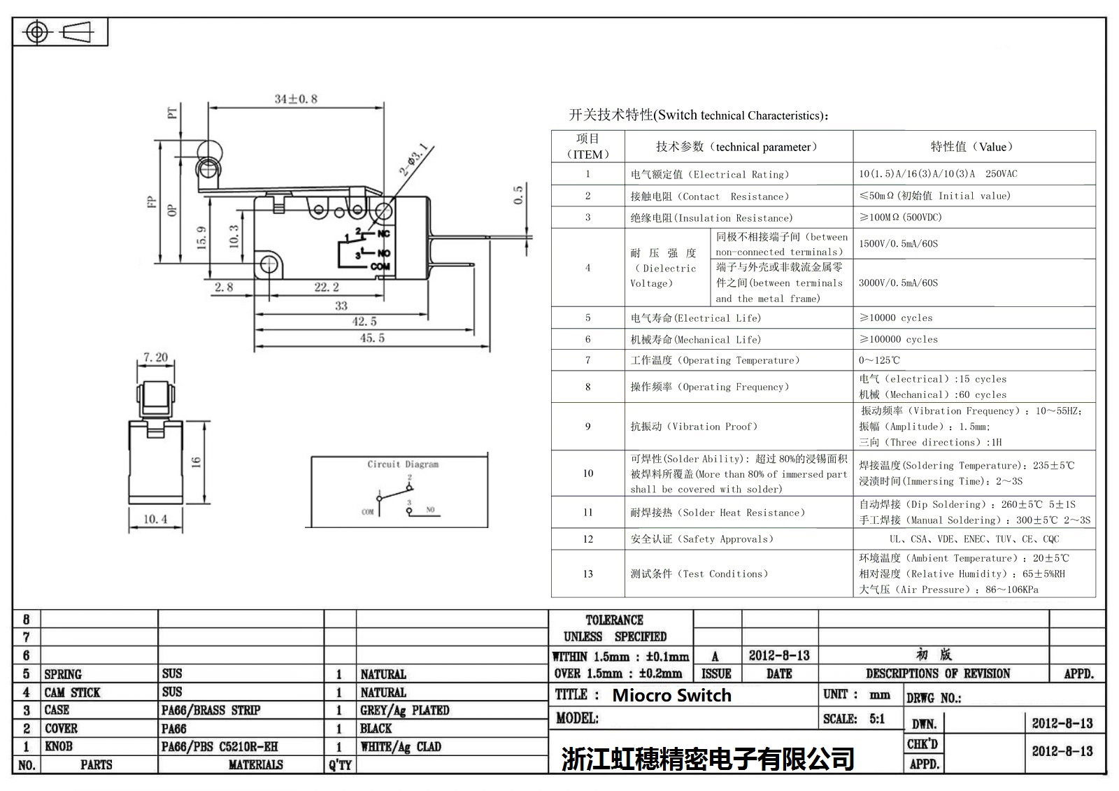 微動(dòng)開(kāi)關(guān)電氣特性