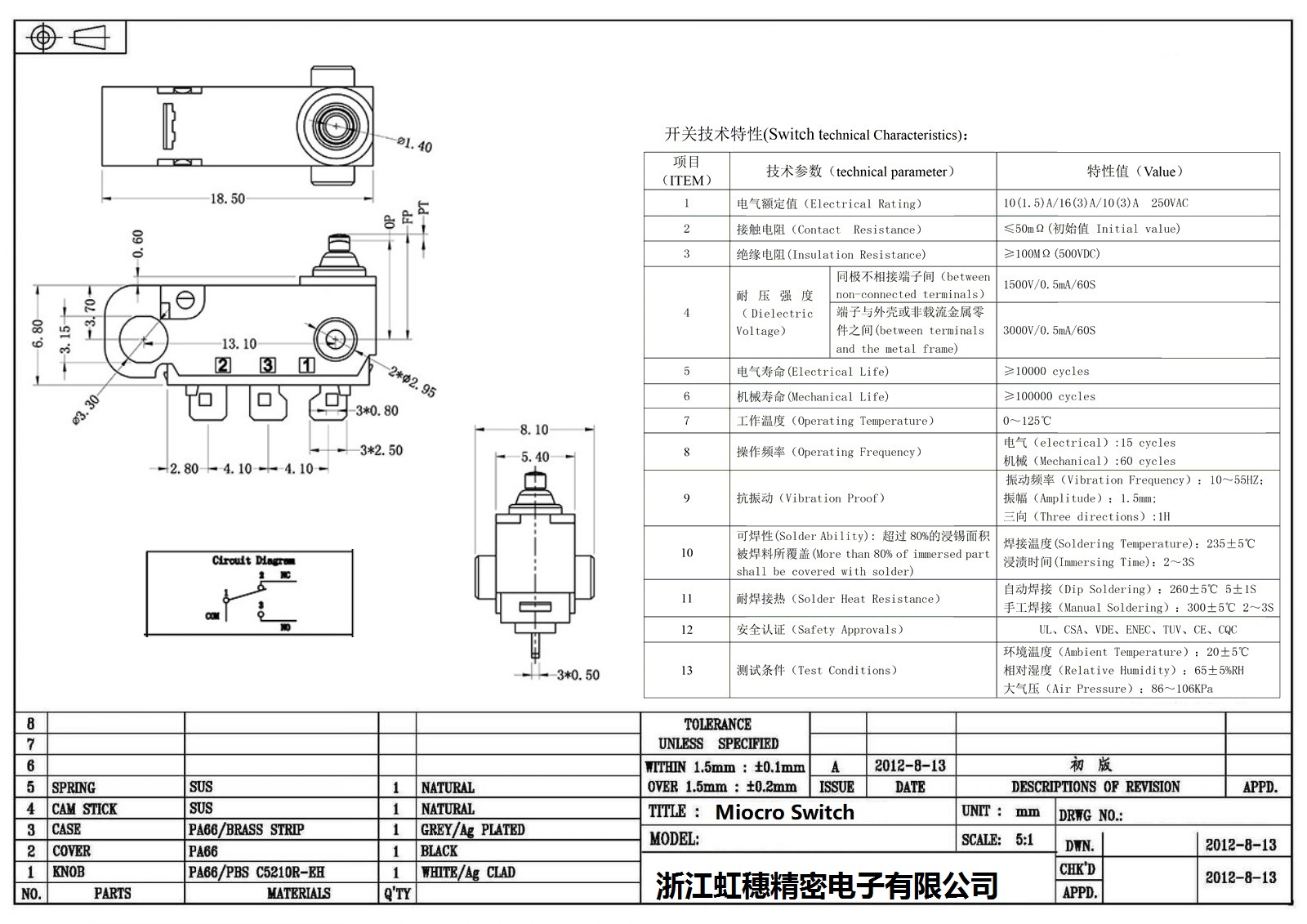 .請根據額定值電流、操作負載、驅動桿的種類、使用溫度等要求選擇合適型號的開關;