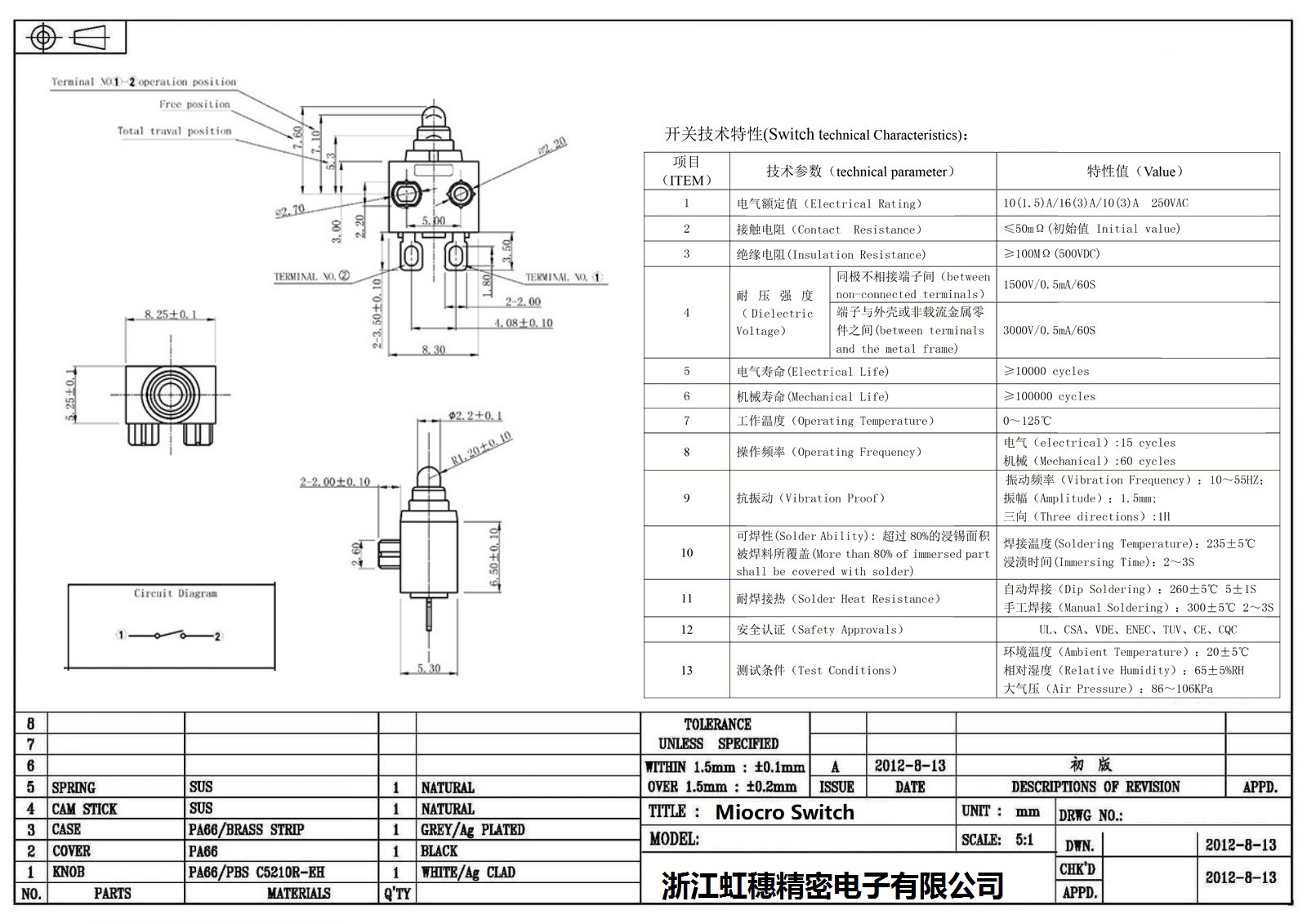 微動開關電氣特性
