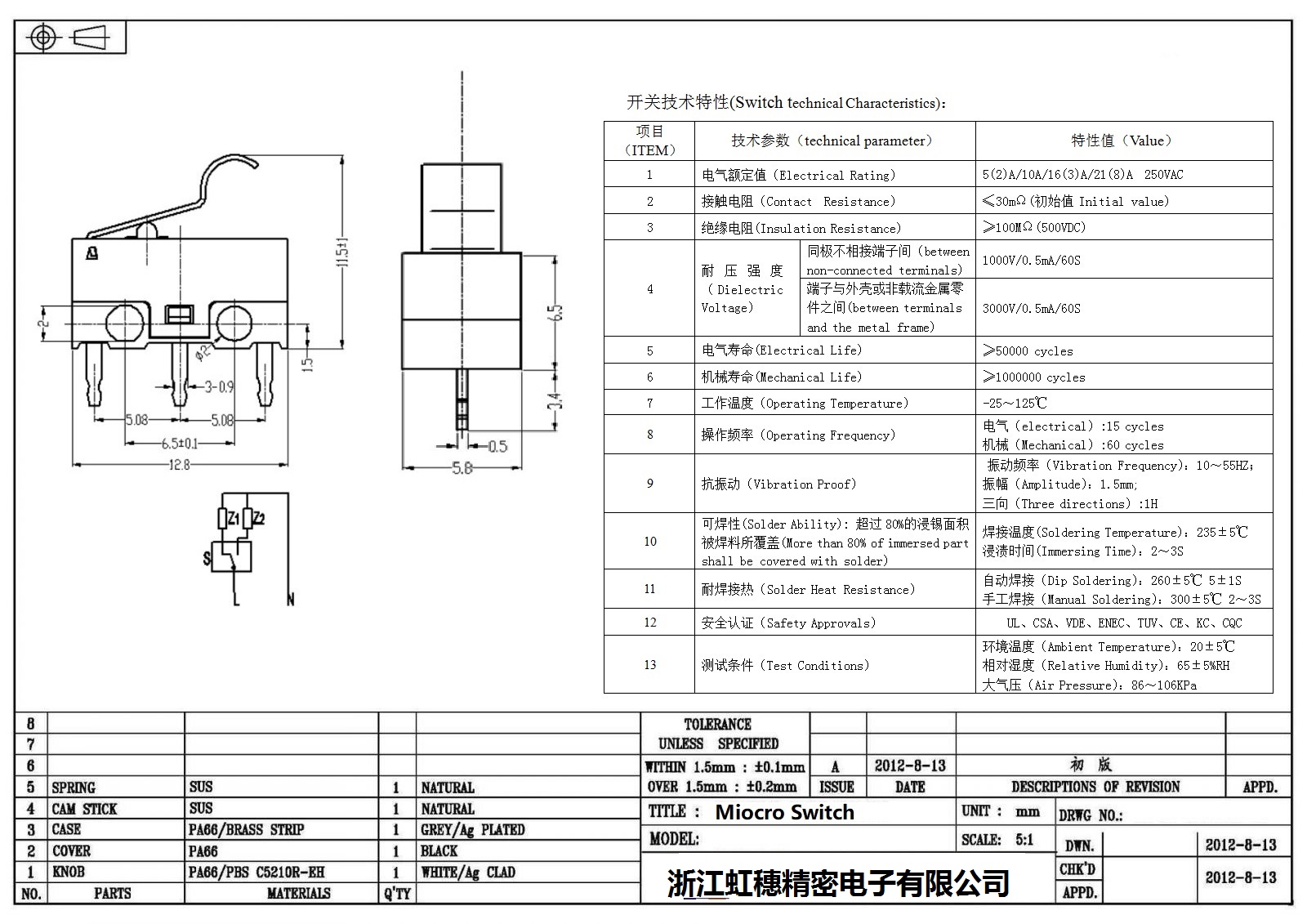 微動開關電氣特性