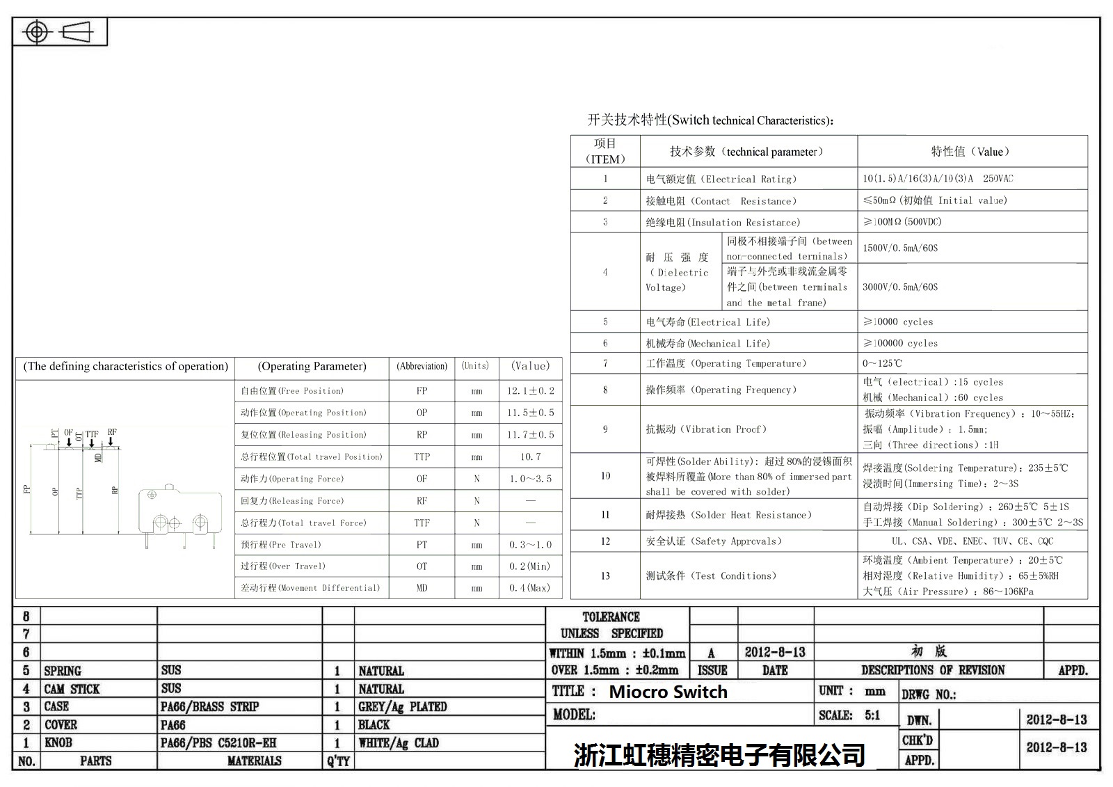 微動(dòng)開關(guān)電氣特性